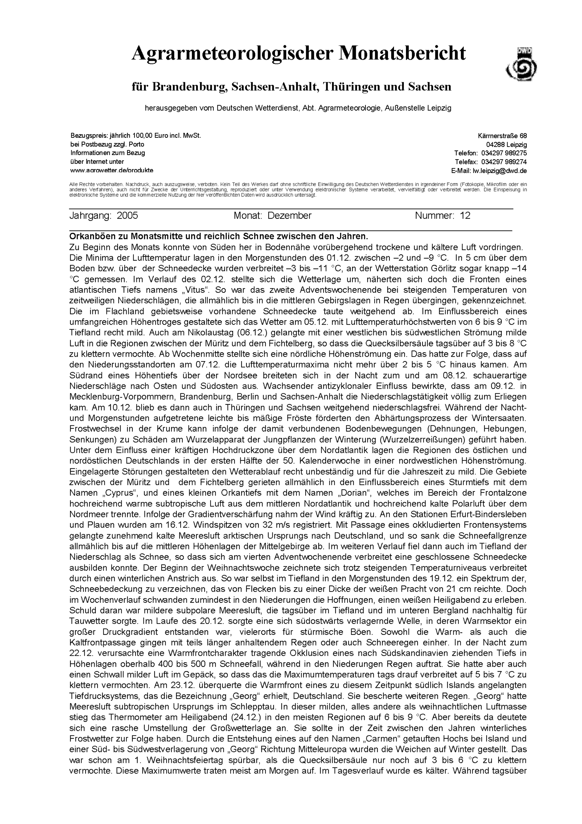 Agrarmeteorologischer Monatsbericht für Brandenburg, Sachsen-Anhalt, Thüringen und...