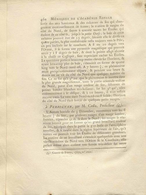 Observation d'une Aurore boréale singulière et d'une forme très-extraordinaire, observée à Paris, de l'Observatoire de la Marine, le 26 Février 1777 : avec les observations de deux autres Aurores boréales remarquables, des 3 Novembre & 3 Décembre de la même année / par M. Messier