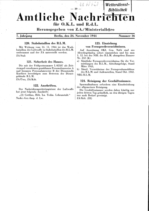 Amtliche Nachrichten für OKL und RdL