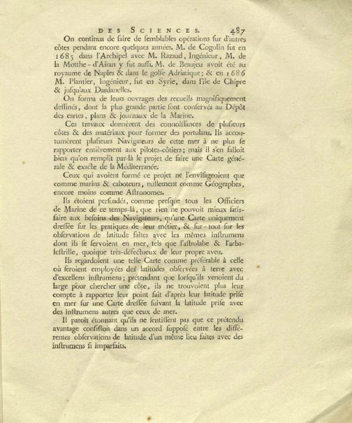 Projet D'Observations astronomiques Et Hydrographiques : Pour parvenir à former pour la mer Méditerranée, une suite de Cartes exactes, accompagnées d'un Portulan, sous le titre de Neptune francois ; second volume / par M. de Chabert