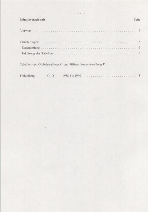Tabellen von Globalstrahlung G und diffuser Sonnenstrahlung D