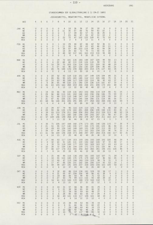 E. Stationen Freiburg, Konstanz, Trier, Weihenstephan, Würzburg / Deutscher Wetterdienst, Meteorologisches Observatorium Hamburg