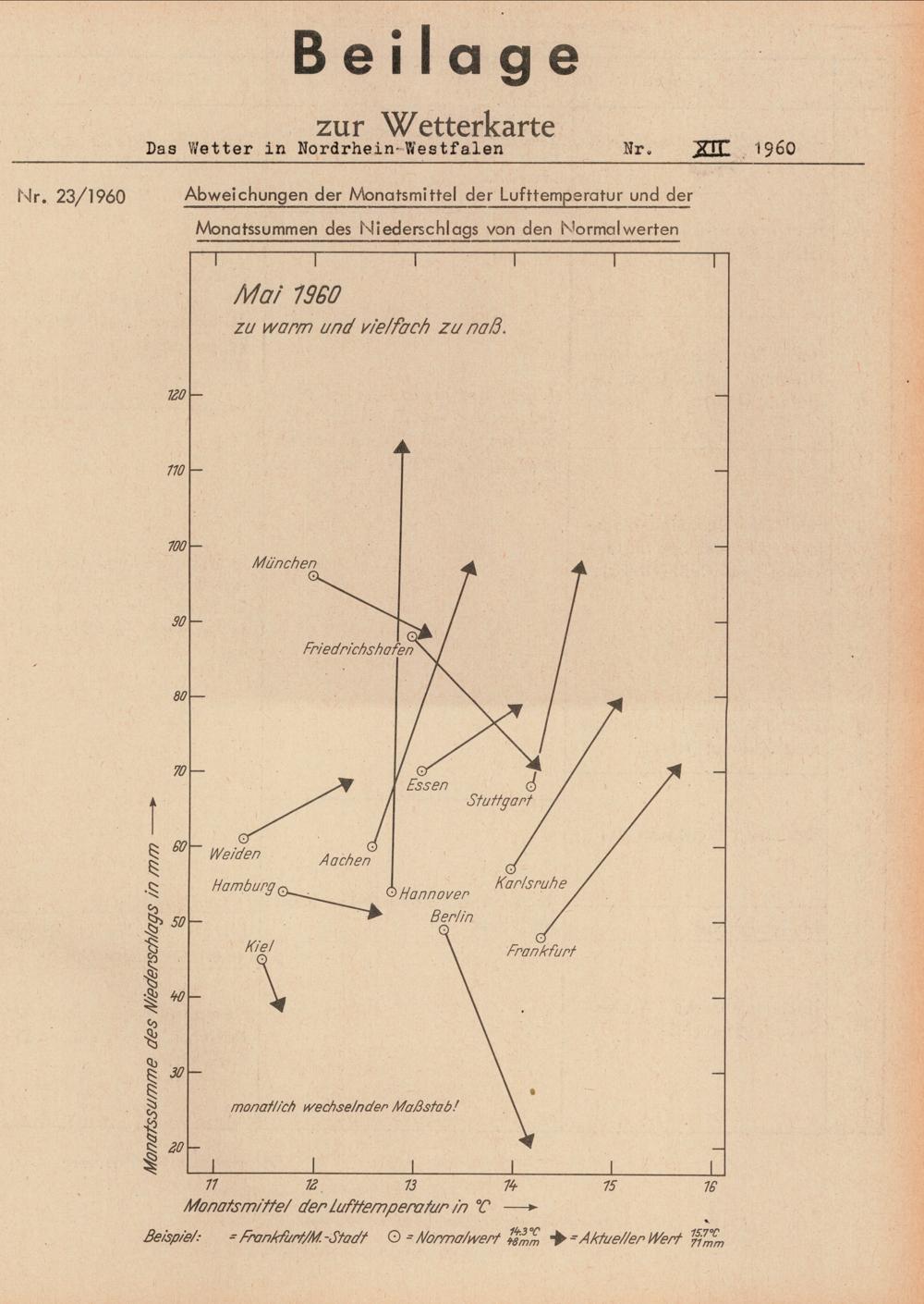 (1960) 23. Abweichungen der Monatsmittel der Lufttemperatur und der Monatssummen des Niederschlags von den Normalwerten