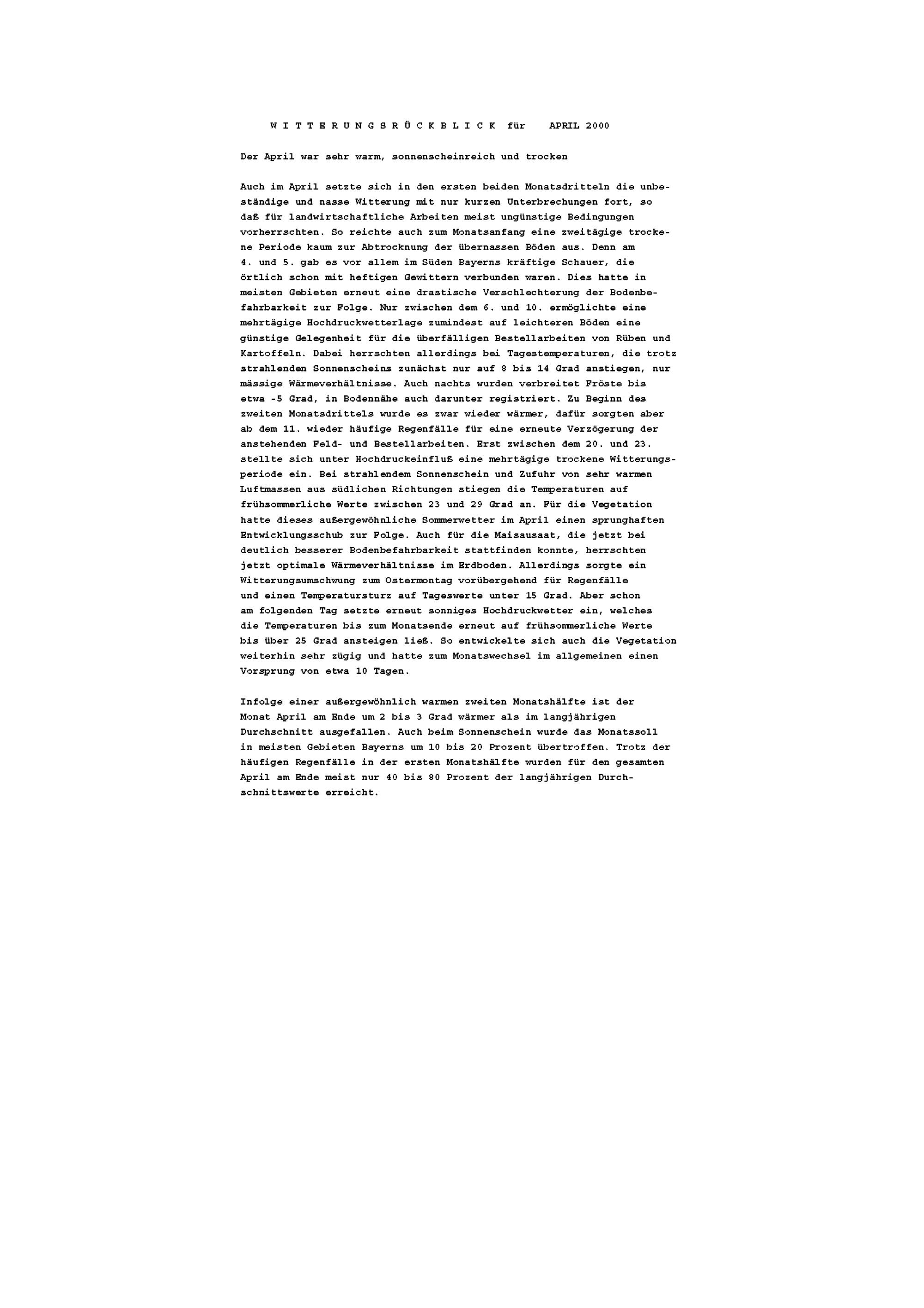 Agrarmeteorologischer Monatsbericht für Bayern