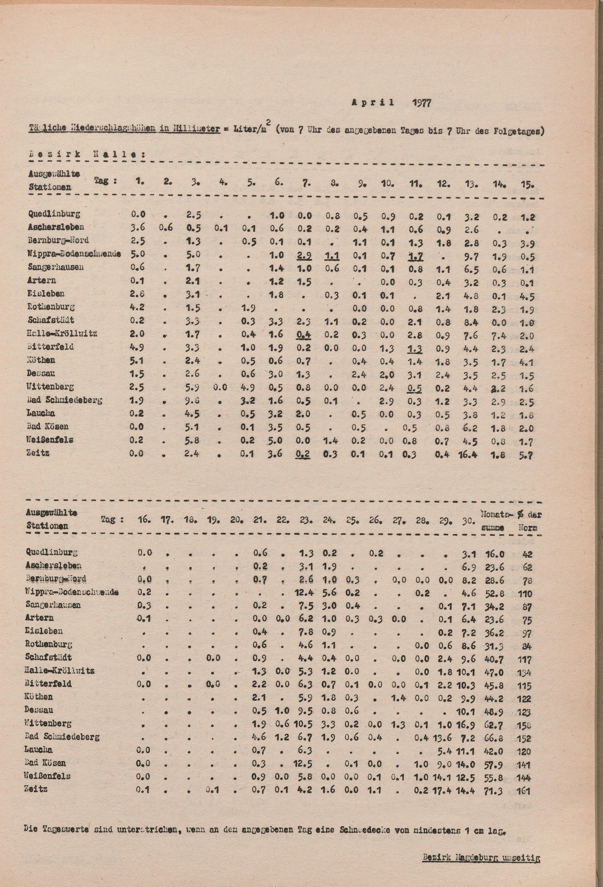 Witterungsübersicht der Bezirke Halle und Magdeburg