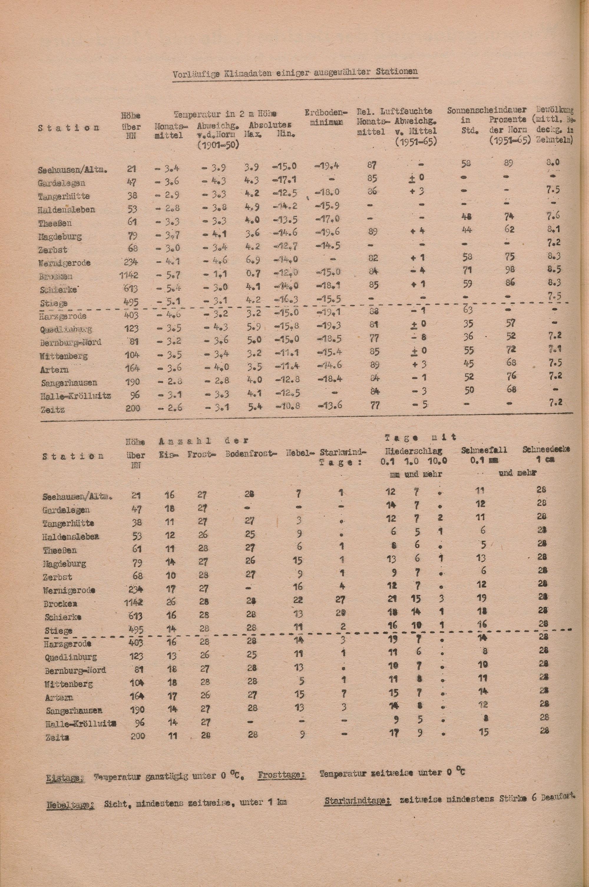 Witterungsübersicht der Bezirke Halle und Magdeburg
