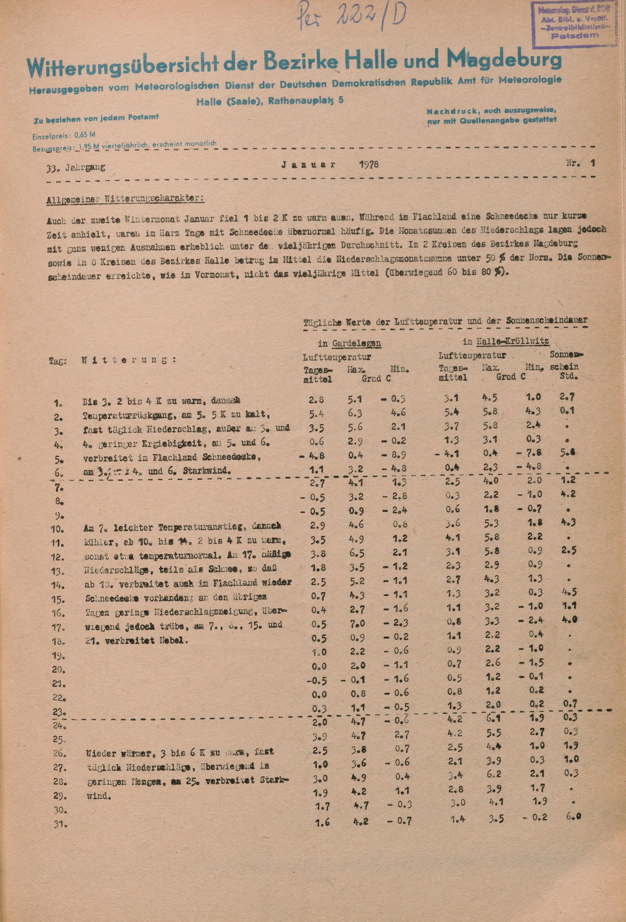 Witterungsübersicht der Bezirke Halle und Magdeburg