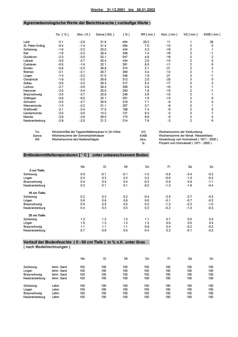 Agrarmeteorologischer Wochenbericht für Schleswig-Holstein, Hamburg, Niedersachsen,...