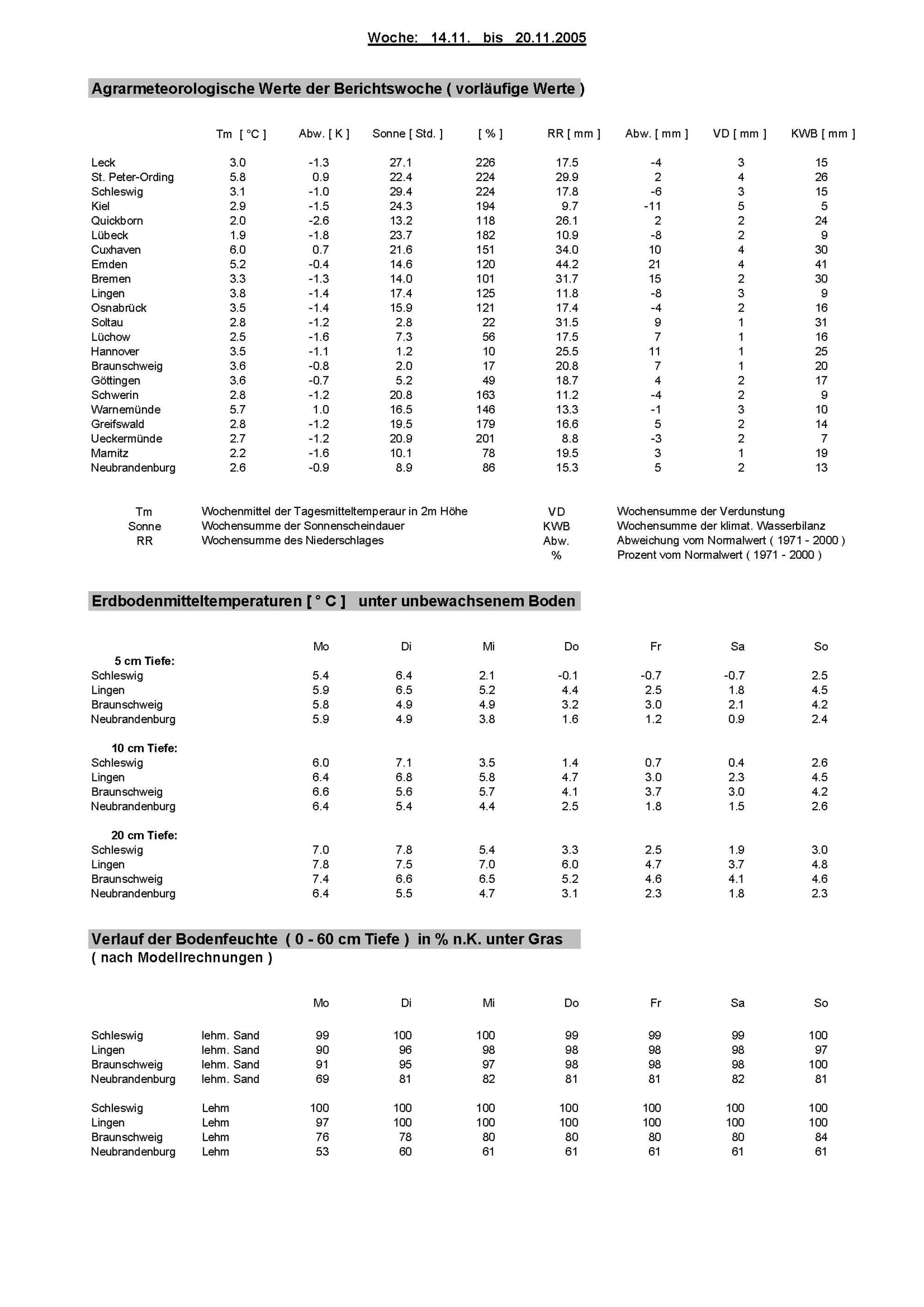 Agrarmeteorologischer Wochenbericht für Schleswig-Holstein, Hamburg, Niedersachsen,...