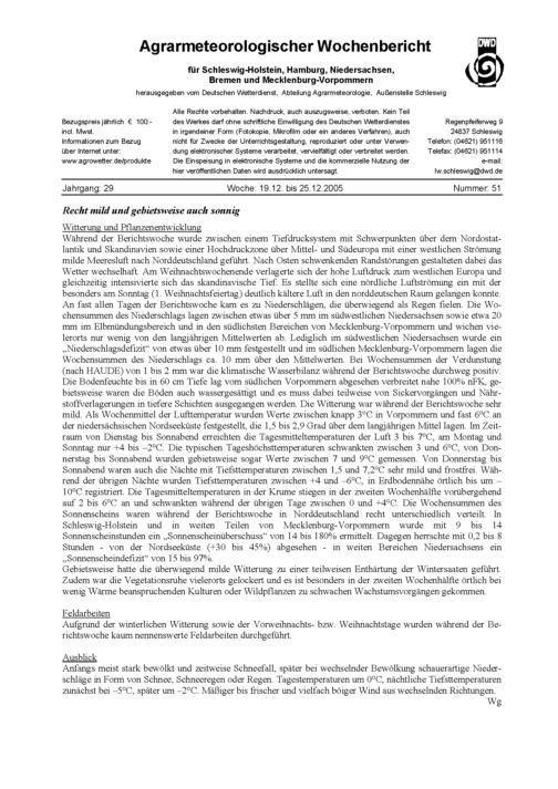 Agrarmeteorologischer Wochenbericht für Schleswig-Holstein, Hamburg, Niedersachsen,...