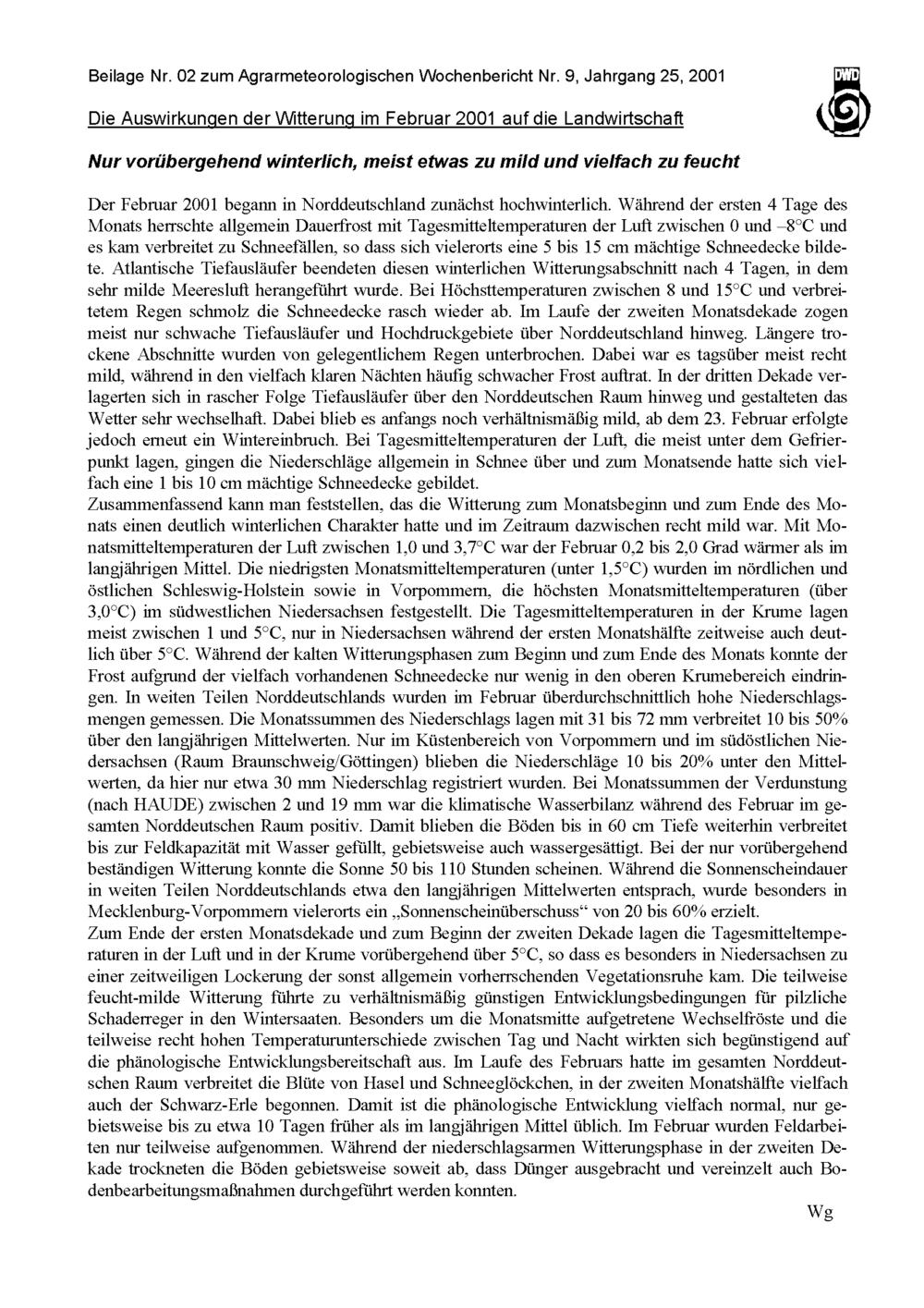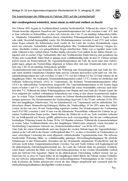 Agrarmeteorologischer Wochenbericht für Schleswig-Holstein, Hamburg, Niedersachsen,...