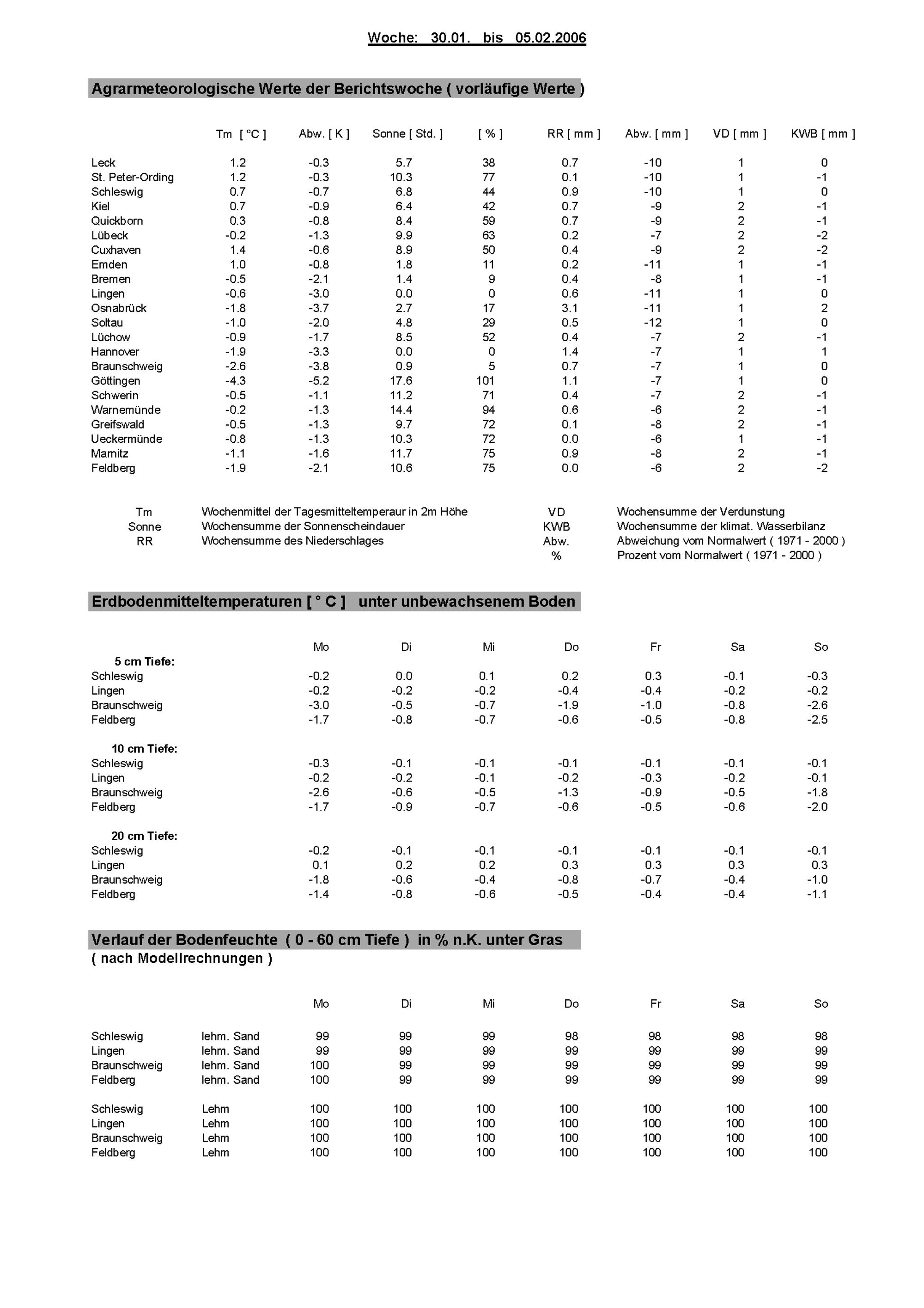 Agrarmeteorologischer Wochenbericht für Schleswig-Holstein, Hamburg, Niedersachsen,...