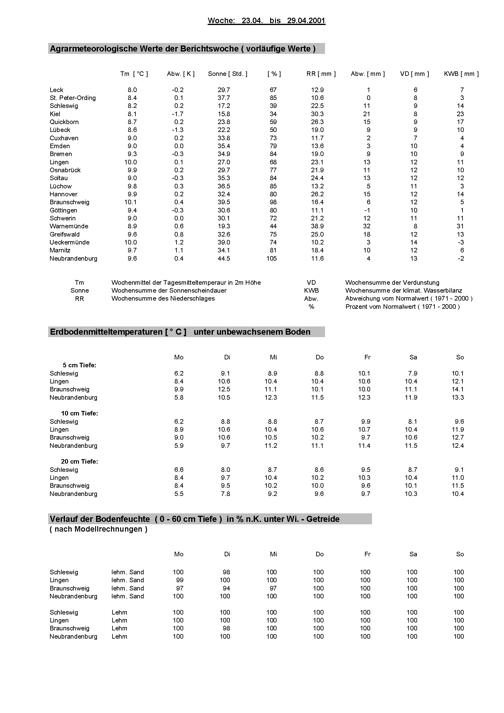 Agrarmeteorologischer Wochenbericht für Schleswig-Holstein, Hamburg, Niedersachsen,...