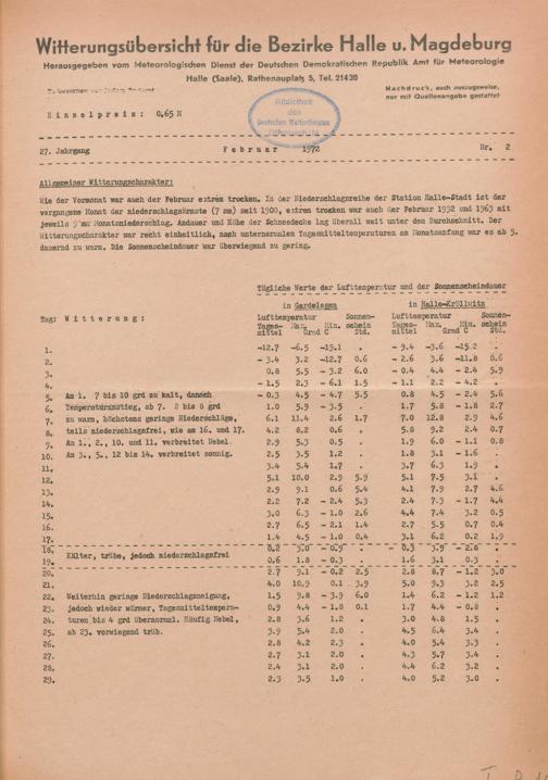 Witterungsübersicht der Bezirke Halle und Magdeburg