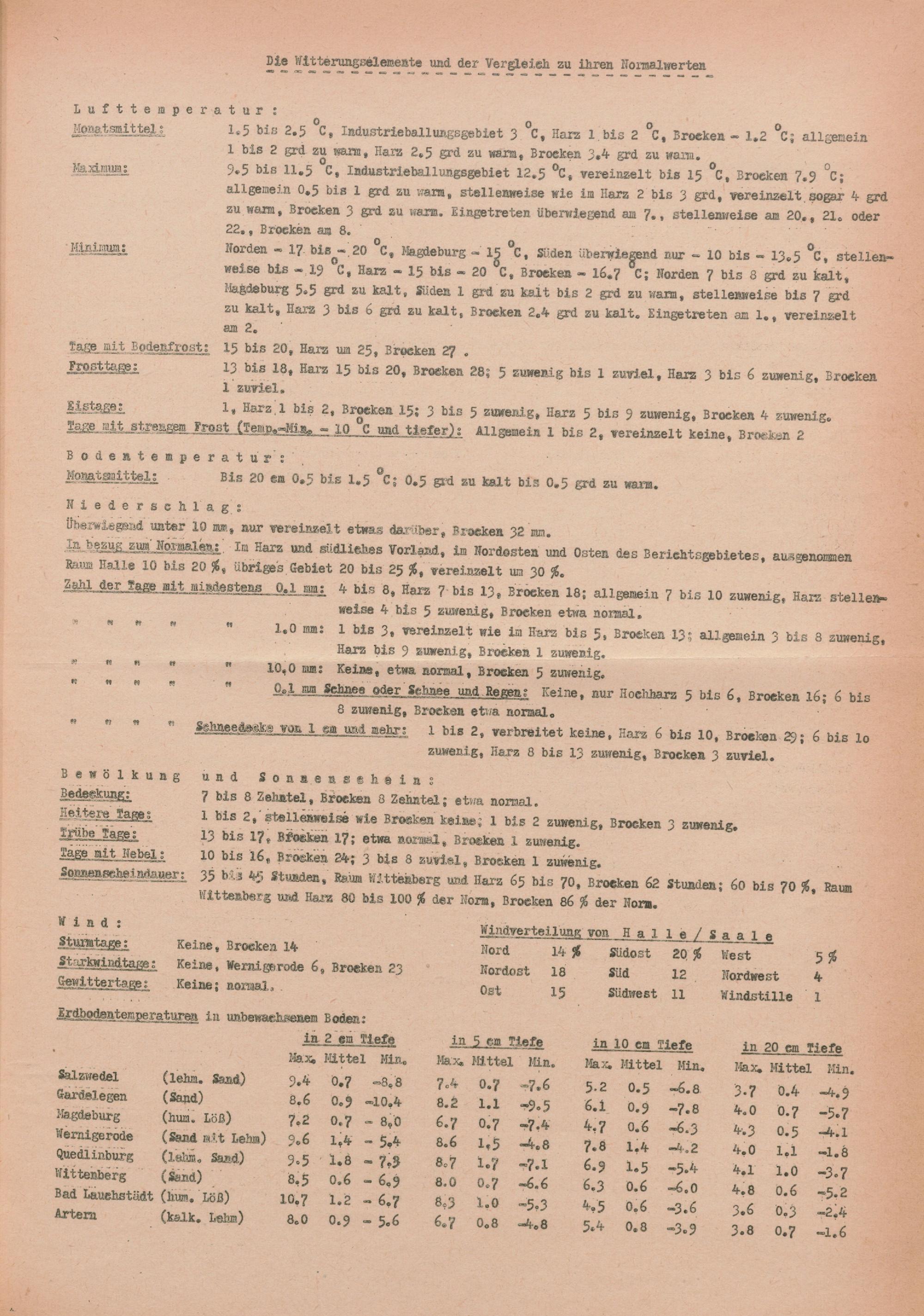 Witterungsübersicht der Bezirke Halle und Magdeburg