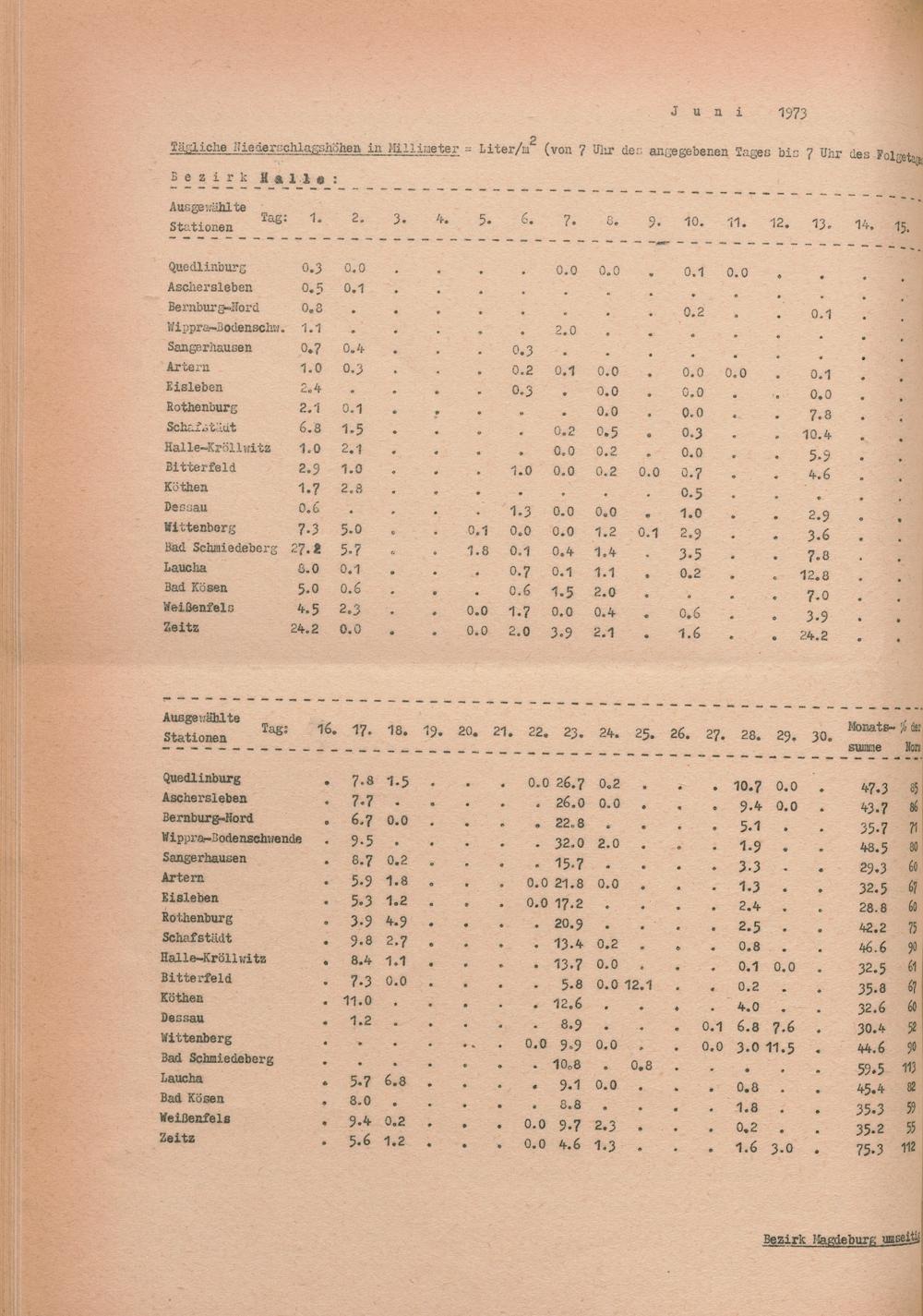 Witterungsübersicht der Bezirke Halle und Magdeburg