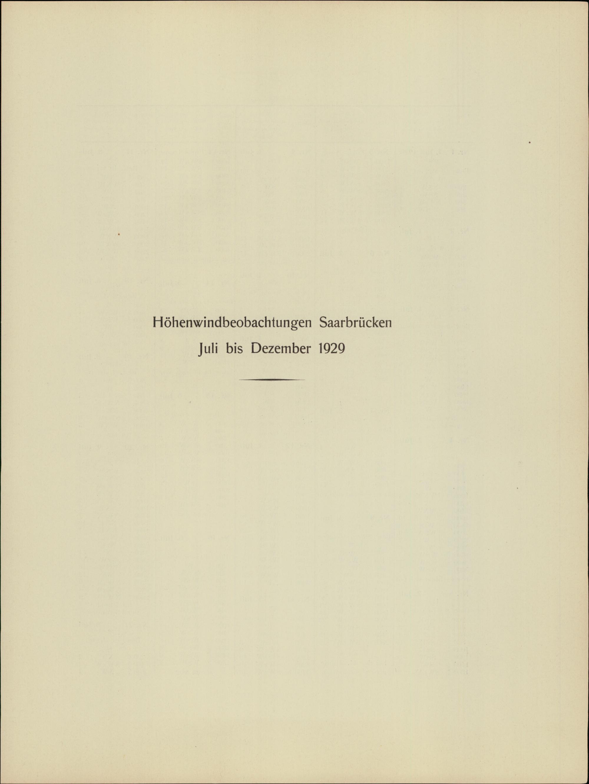 Höhenwindbeobachtungen Saarbrücken Juli bis Dezember 1929