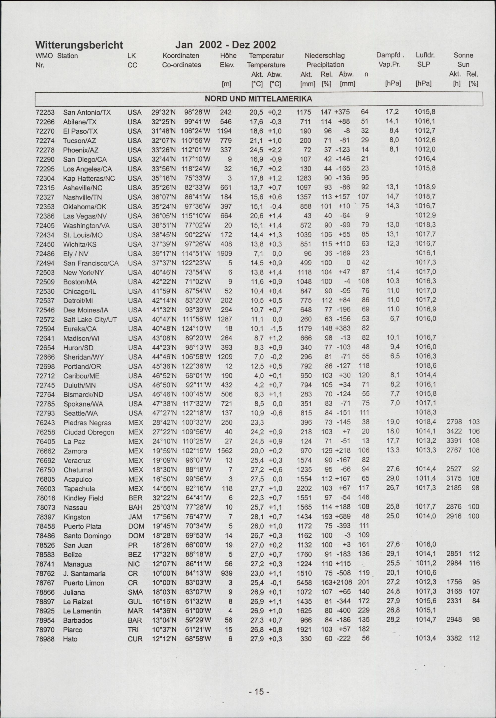 Die Witterung in Übersee