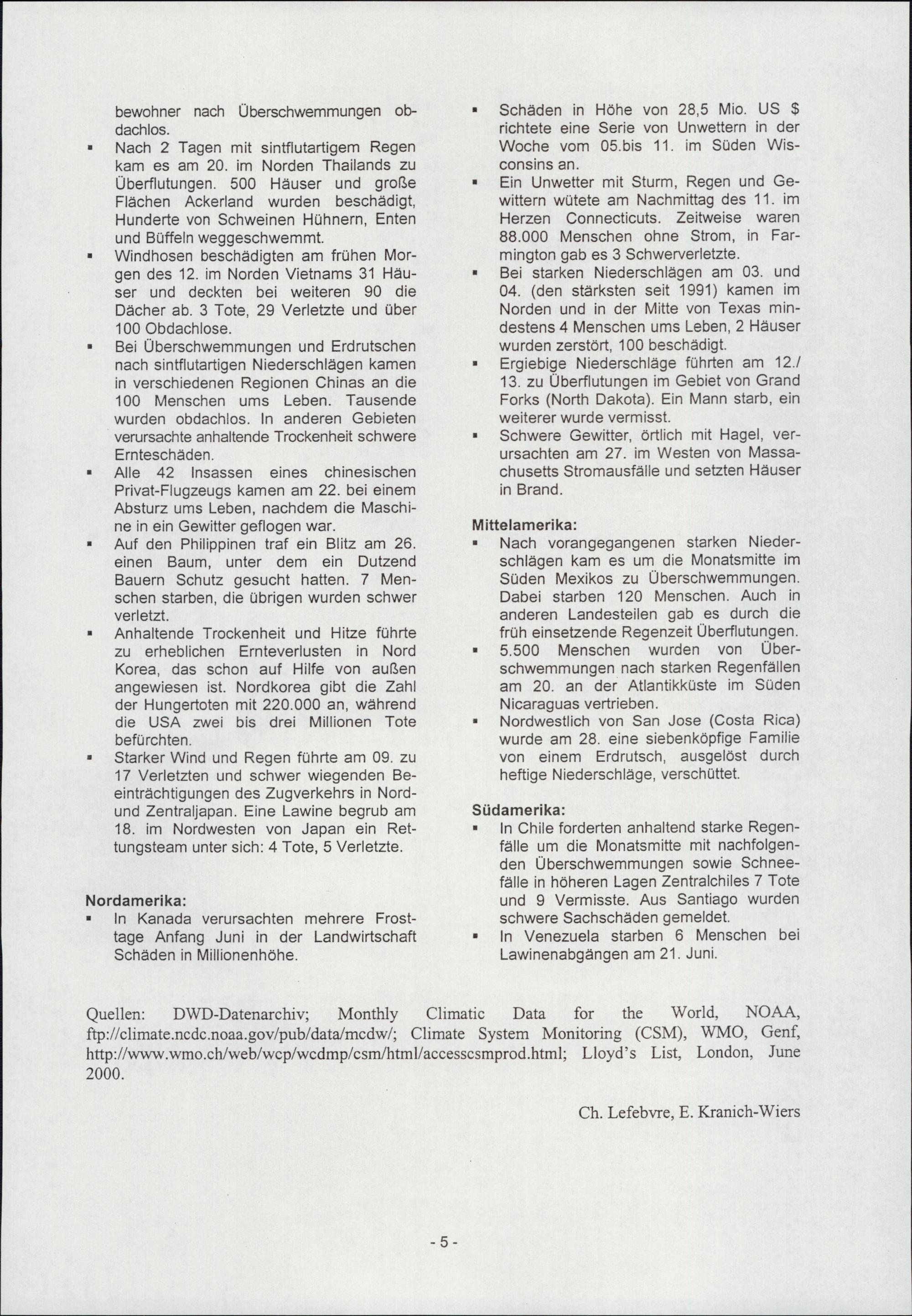Die Witterung in Übersee
