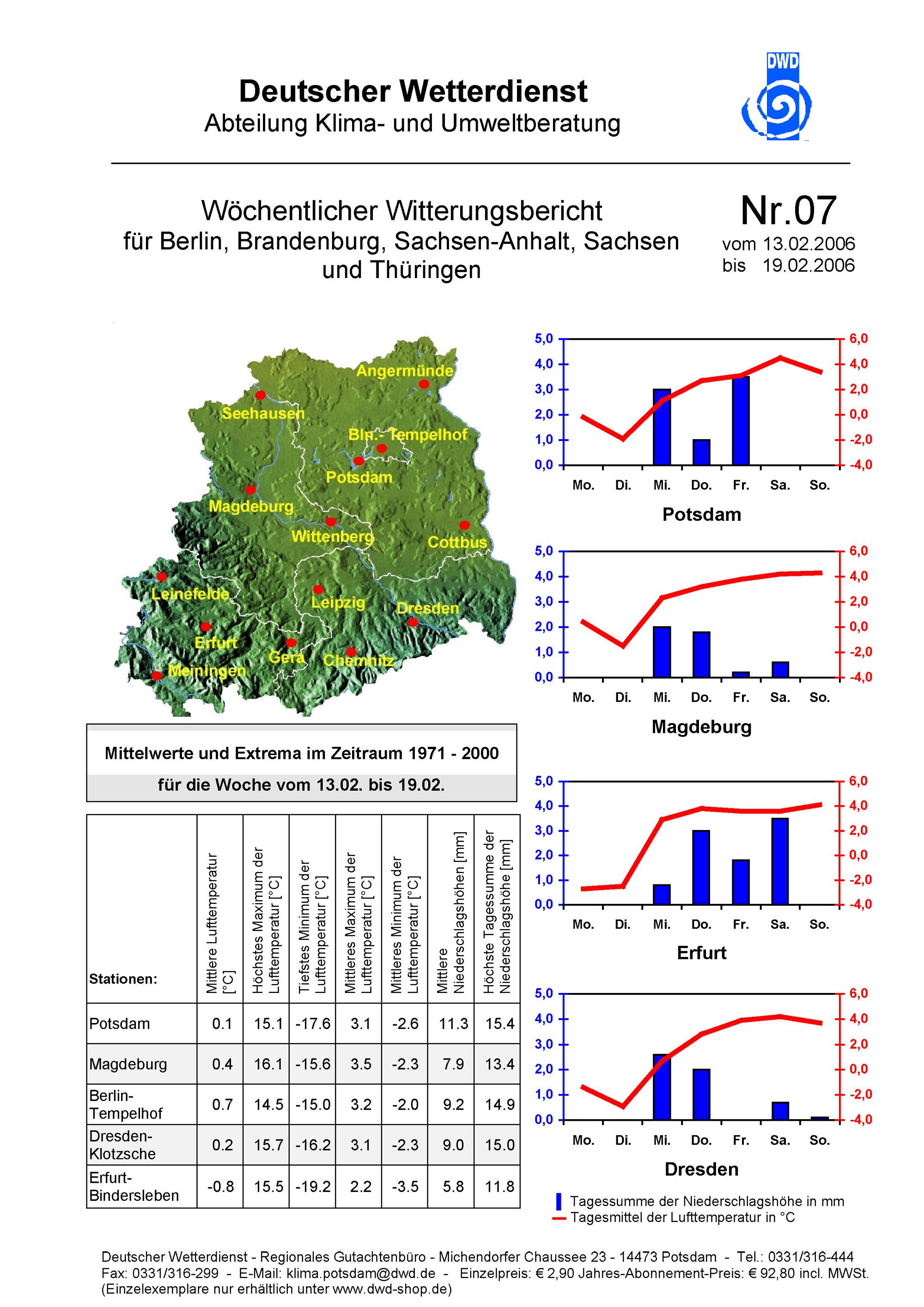 Wöchentlicher Witterungsbericht für Berlin, Brandenburg, Sachsen-Anhalt, Sachsen...