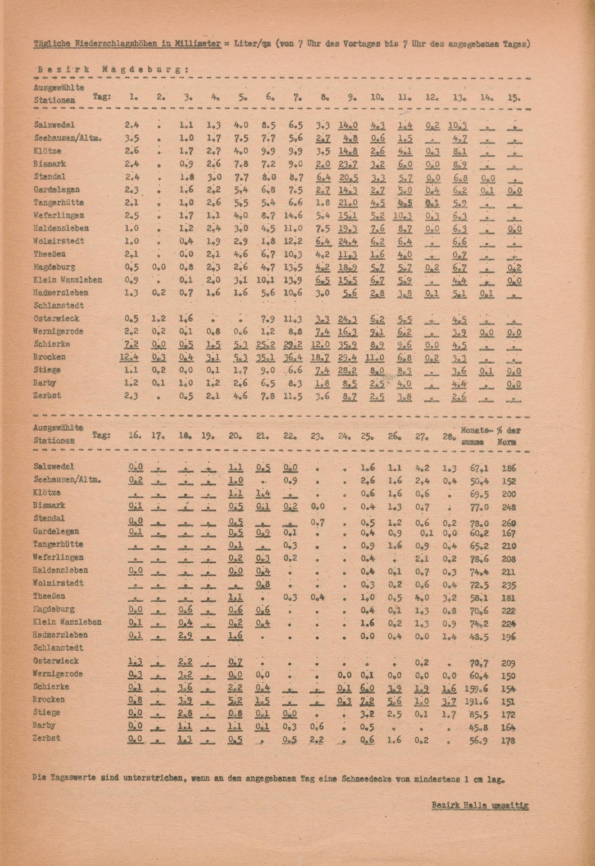 Witterungsübersicht der Bezirke Halle und Magdeburg