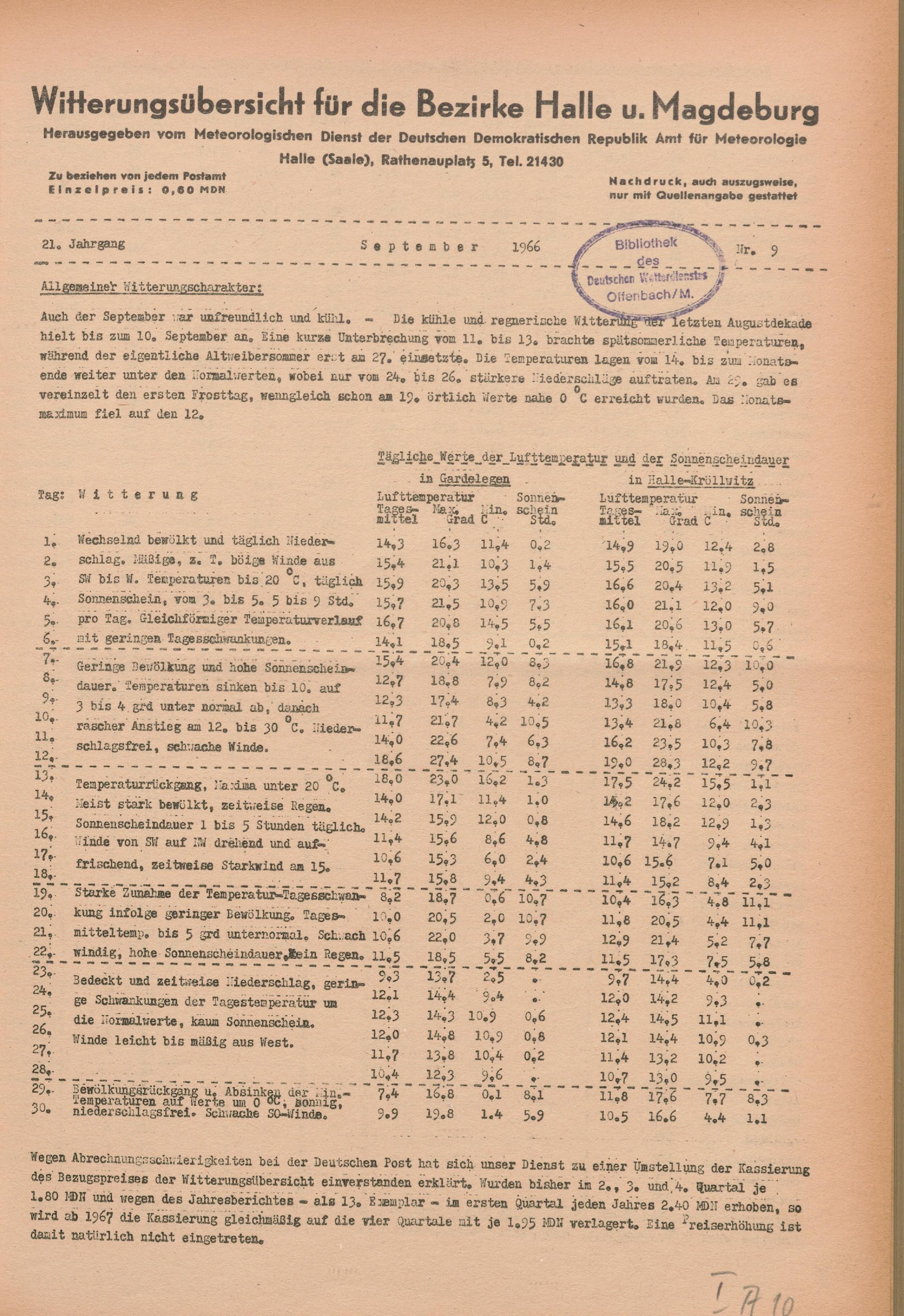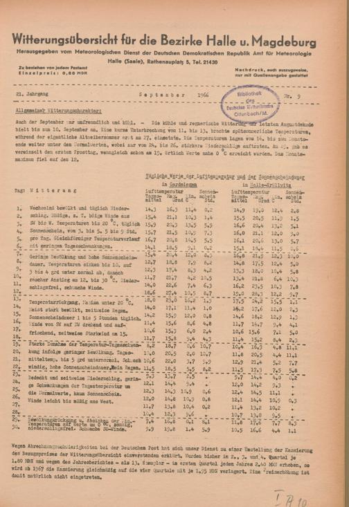 Witterungsübersicht der Bezirke Halle und Magdeburg