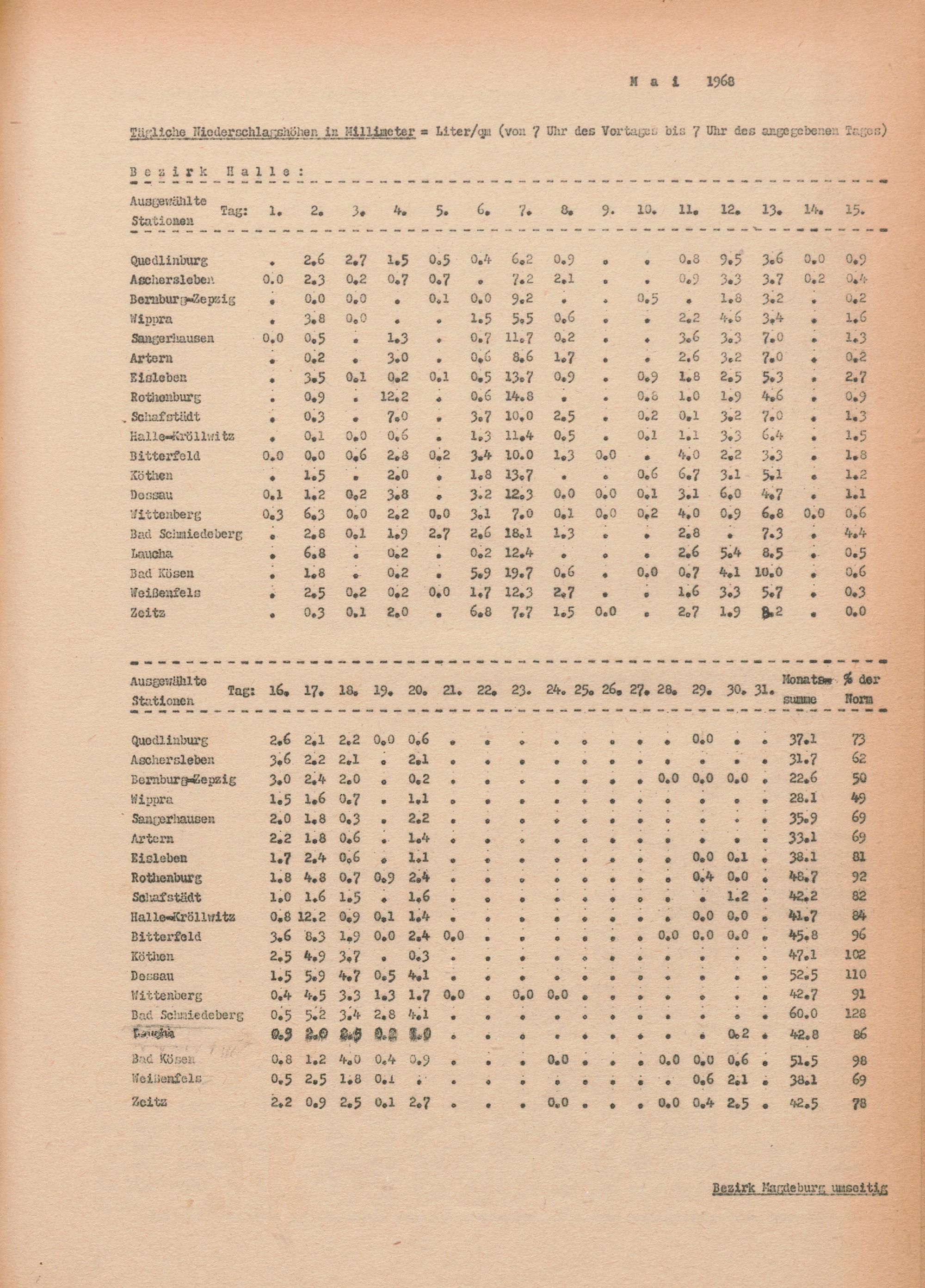 Witterungsübersicht der Bezirke Halle und Magdeburg