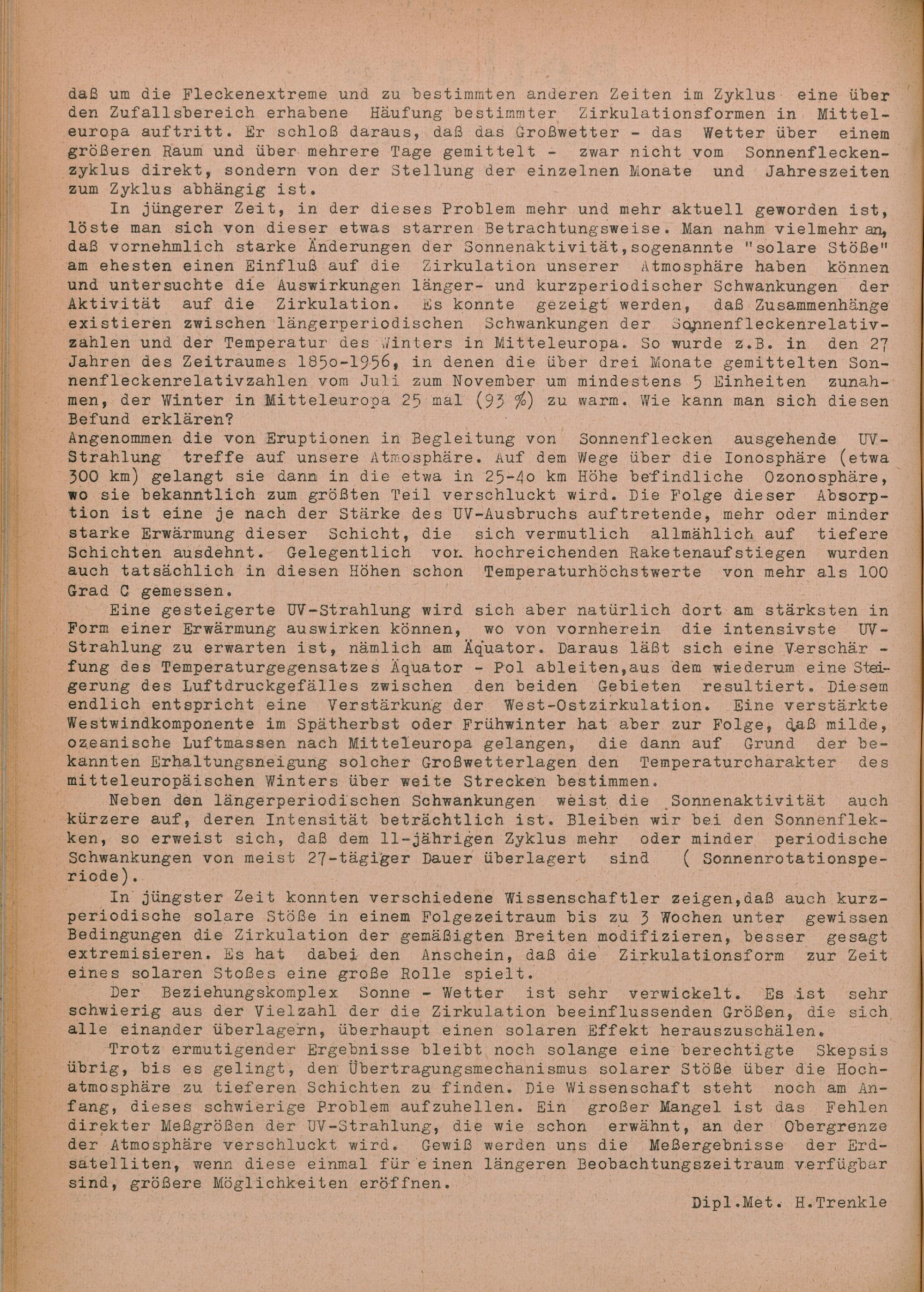 10. Hat gesteigerte Sonnenaktivität Einfluß auf das Wetter?