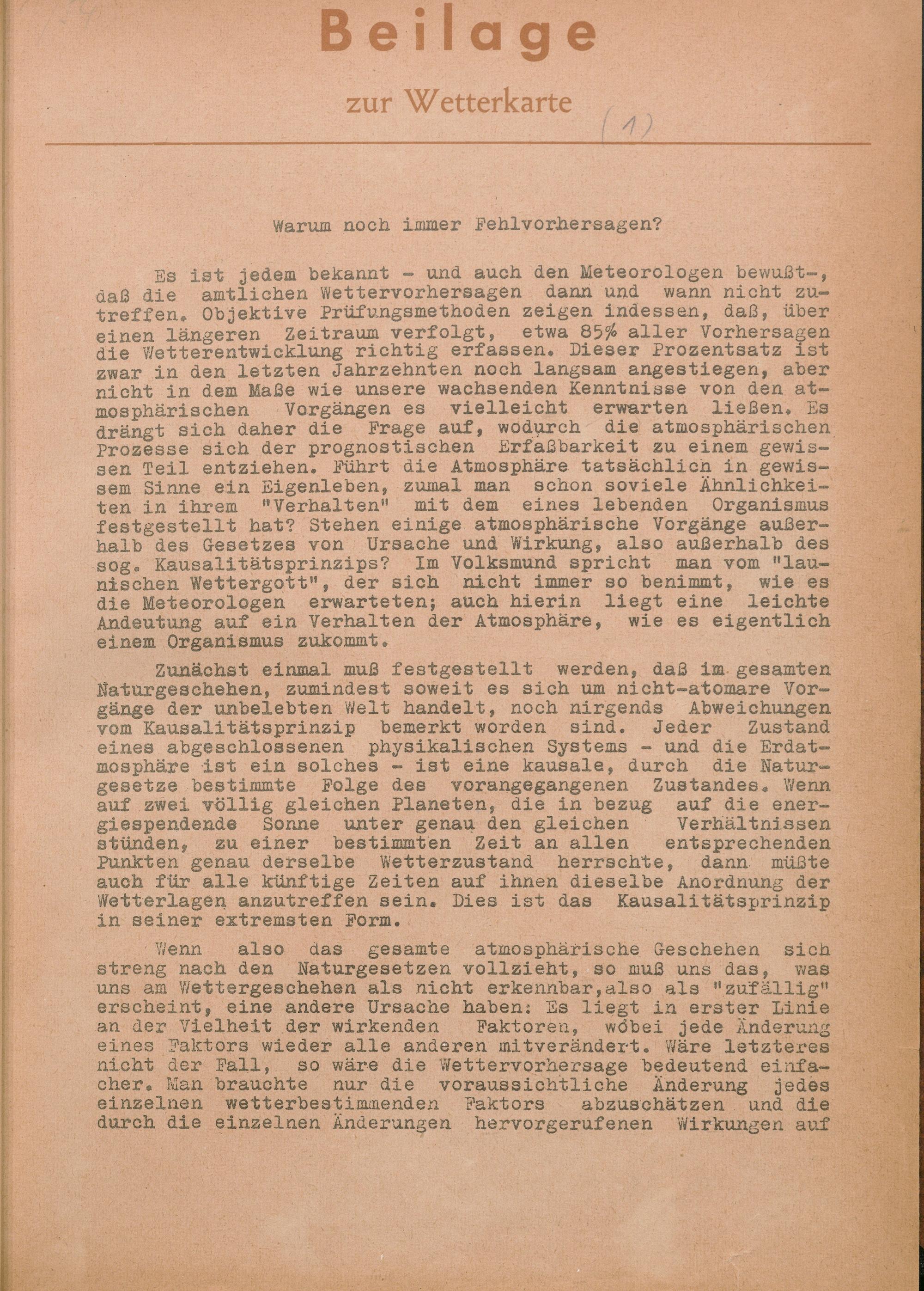 Beilage zur Wetterkarte