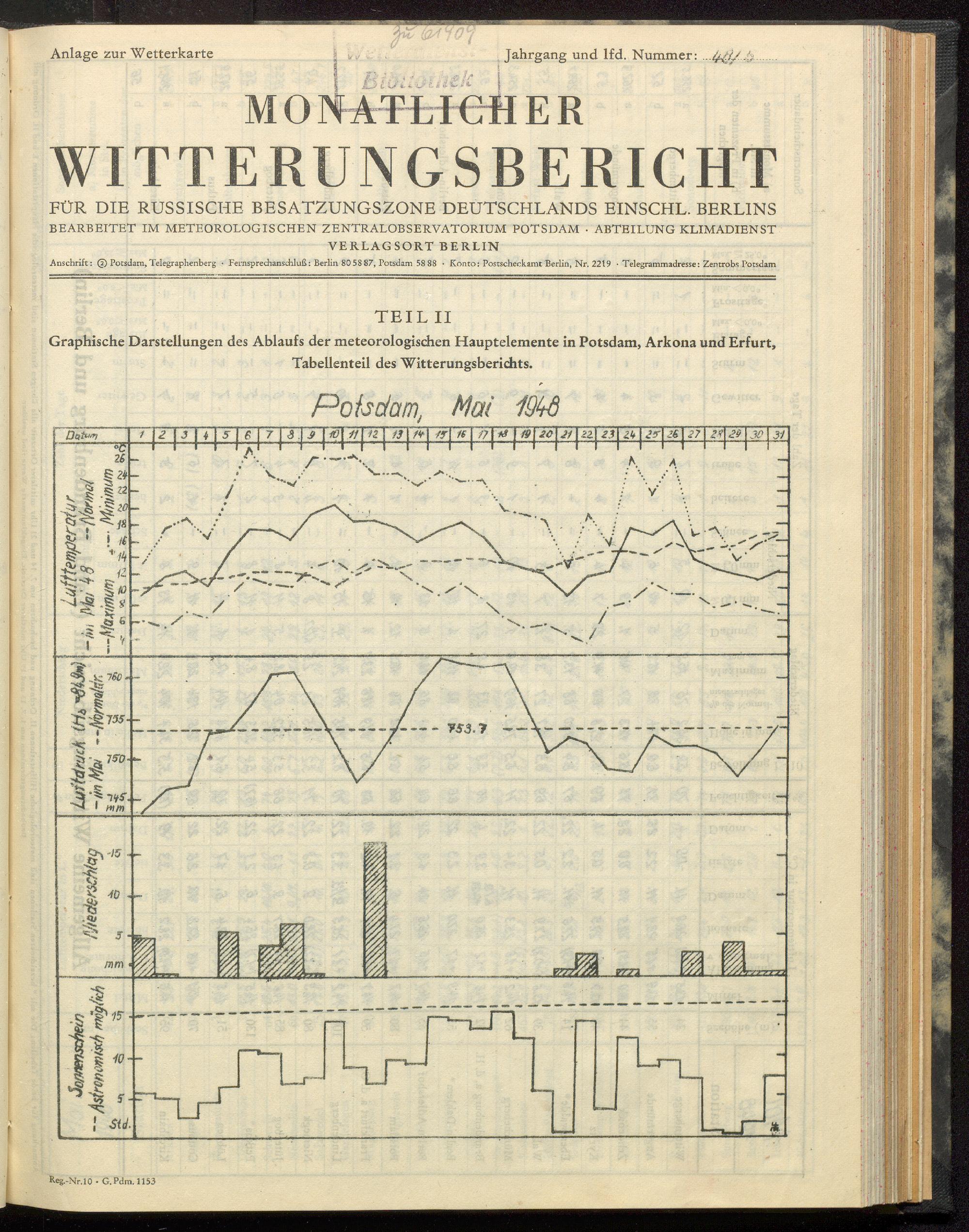 Graphische Darstellungen des Ablaufs der meteorologischen Hauptelemente in Potsdam,...