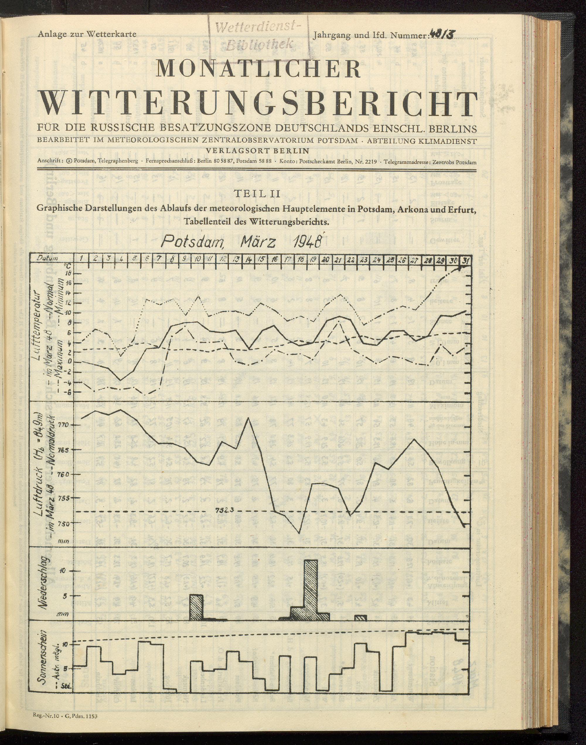 Graphische Darstellungen des Ablaufs der meteorologischen Hauptelemente in Potsdam,...