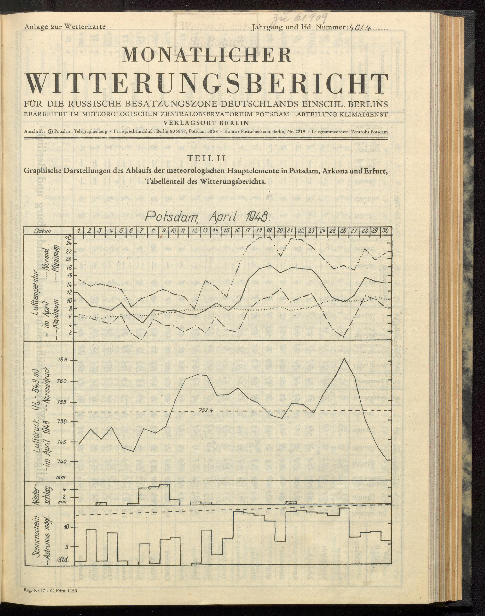 Graphische Darstellungen des Ablaufs der meteorologischen Hauptelemente in Potsdam,...