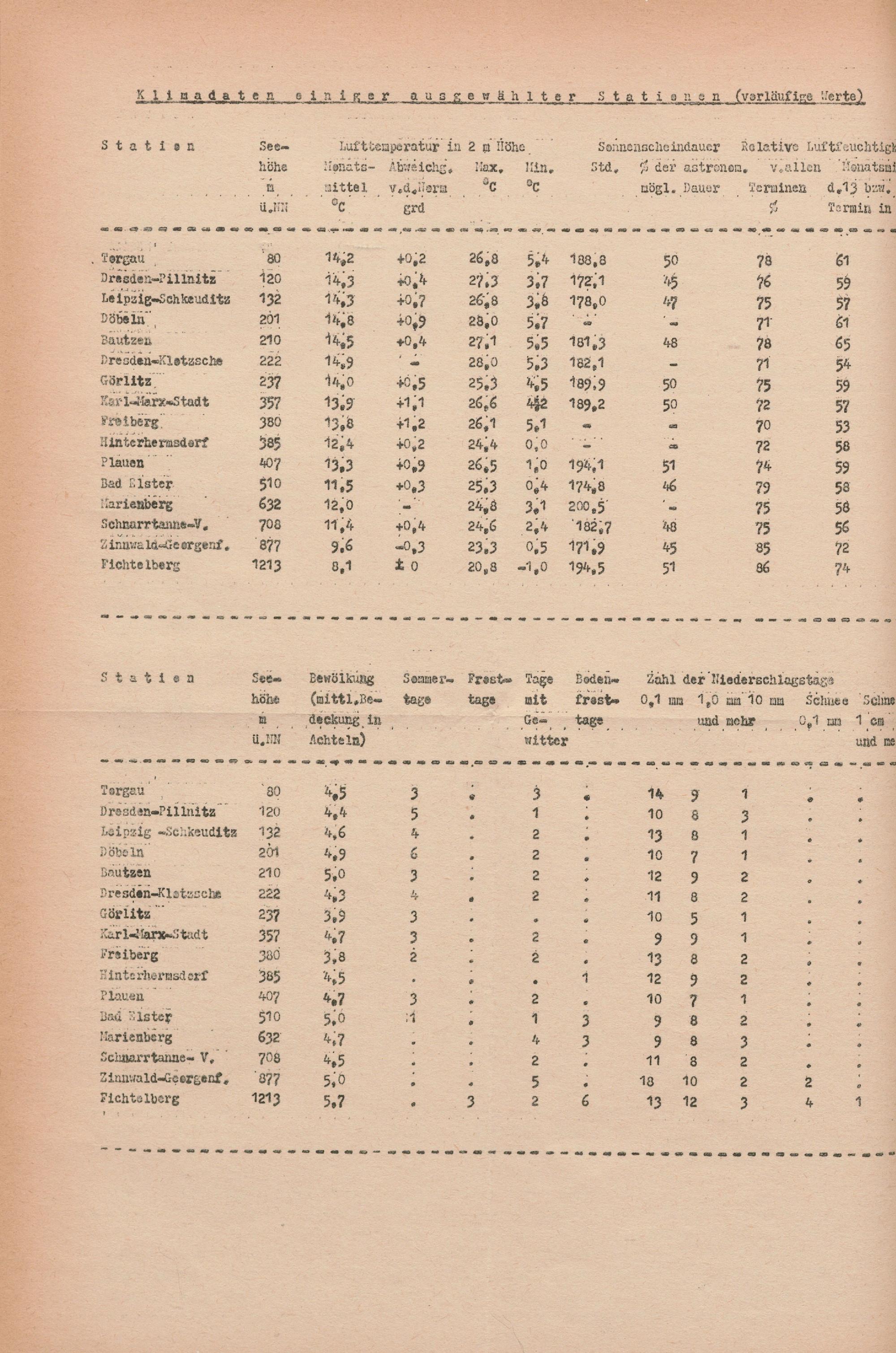 Witterungsübersicht für die Bezirke Dresden, Karl-Marx-Stadt, Leipzig