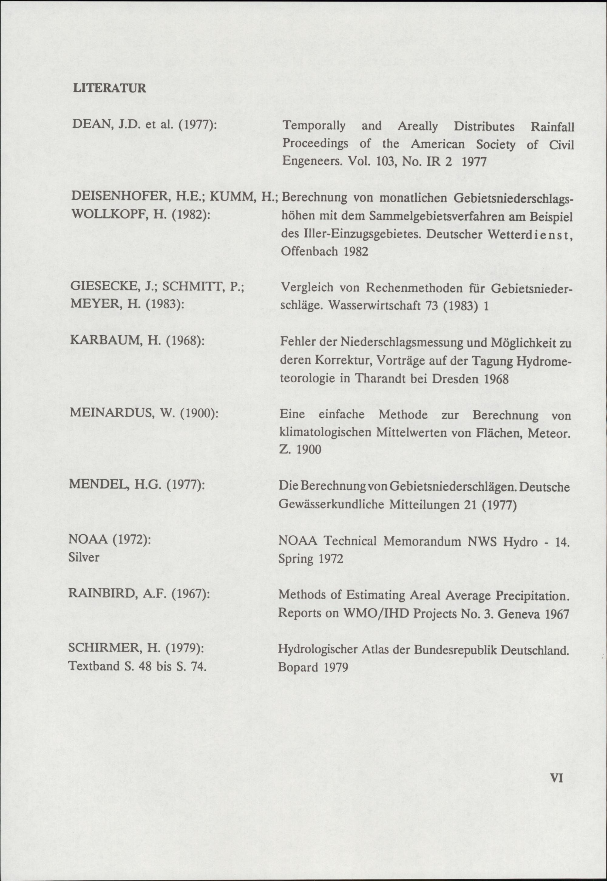 Berechnung von monatlichen Gebietsniederschlägen nach dem Sammelgebietsverfahren...