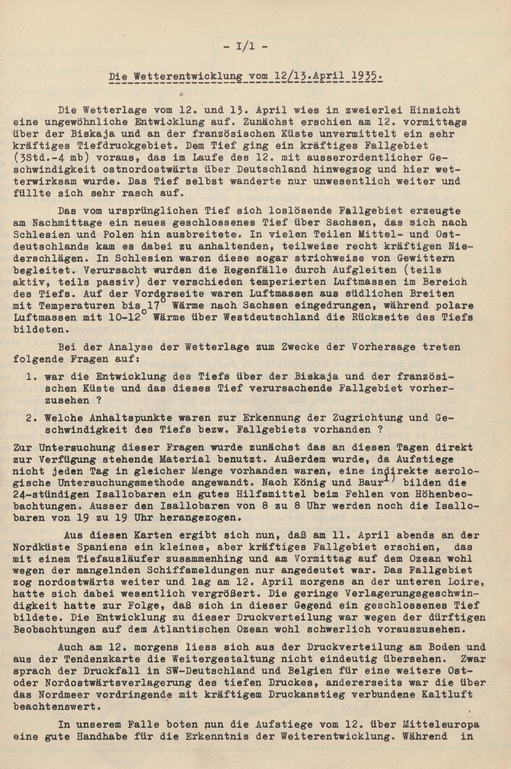 Die Wetterentwicklung vom 12./13. April 1935