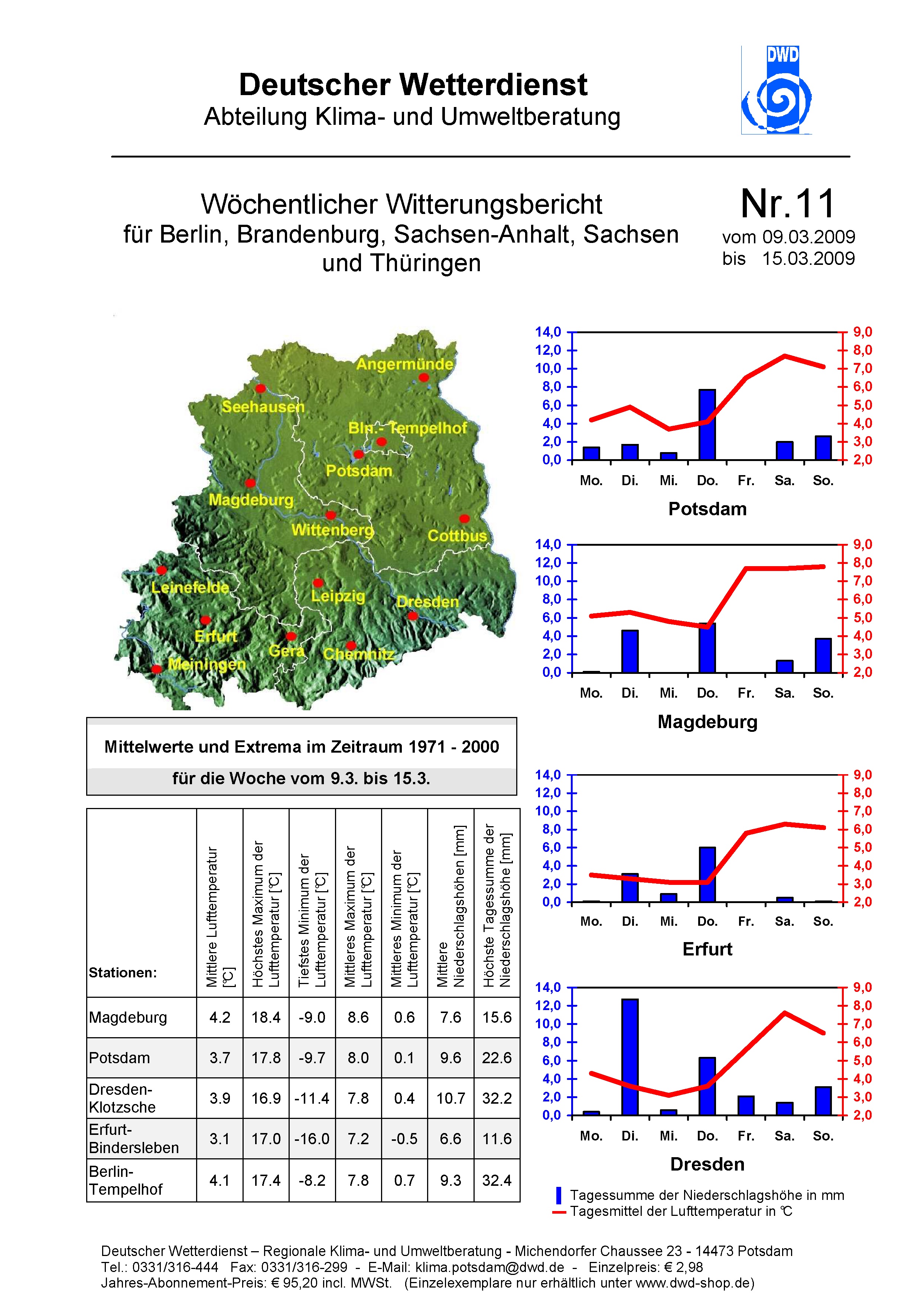 Wöchentlicher Witterungsbericht für Berlin, Brandenburg, Sachsen-Anhalt, Sachsen...