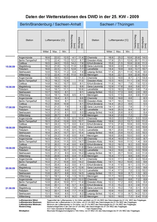 Wöchentlicher Witterungsbericht für Berlin, Brandenburg, Sachsen-Anhalt, Sachsen...