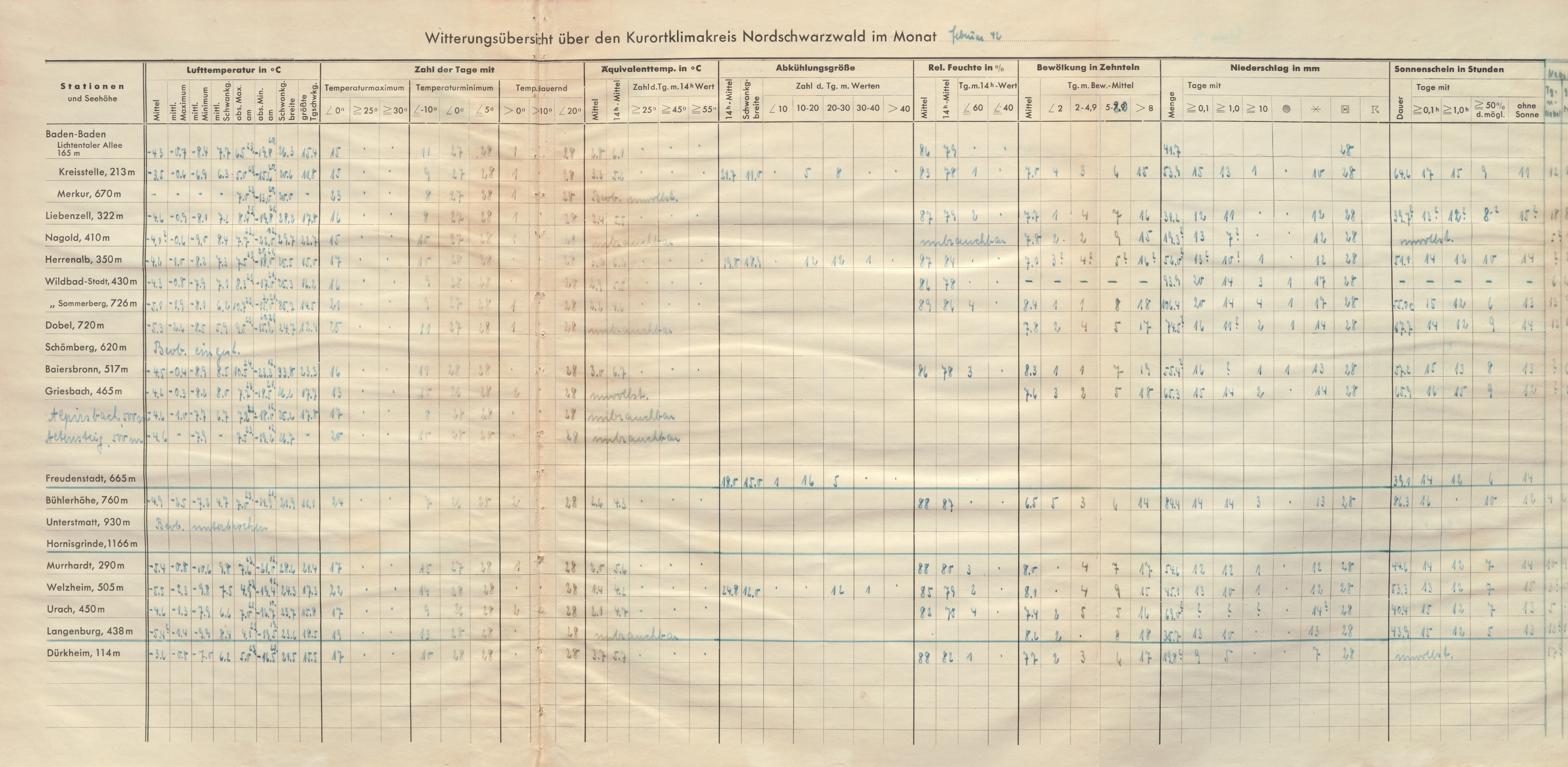 Witterungsbericht der Kurortklimakreisstelle Nordschwarzwald