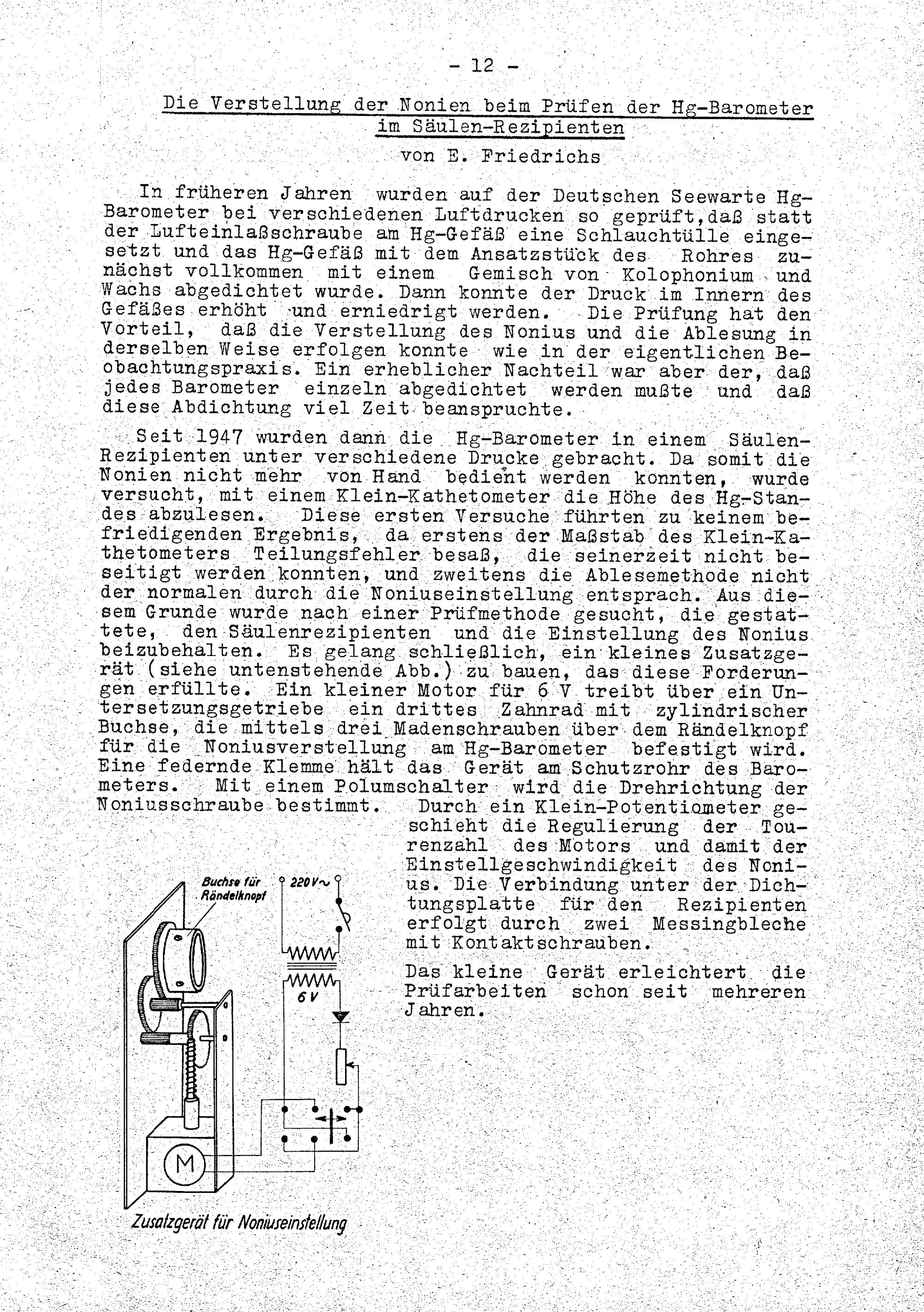 Die Verstellung der Nonien beim Prüfen der HG-Barometer im Säulen-Rezipienten