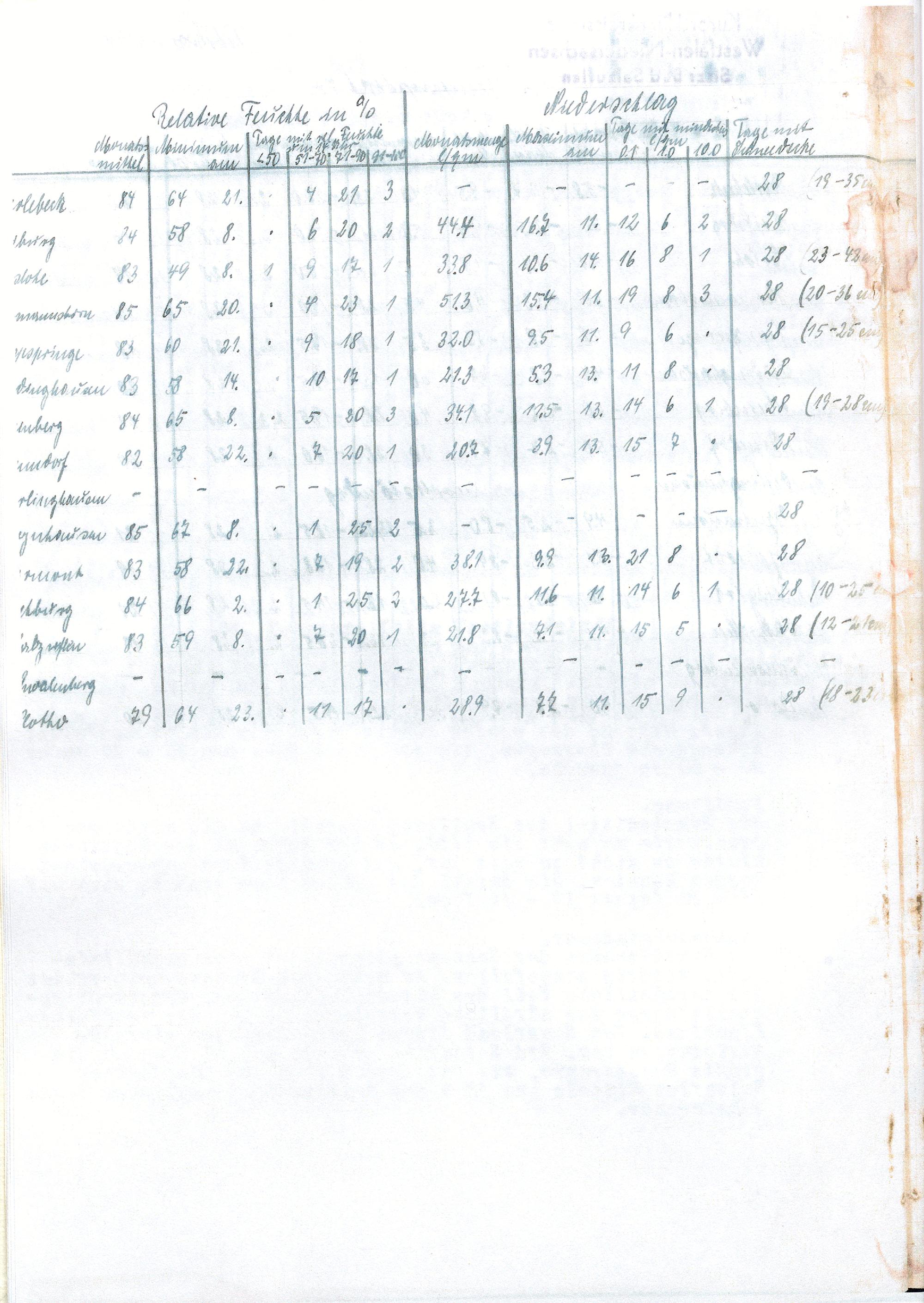 Übersicht über die Witterung im ... im Kurortklimakreis Westfalen-Niedersachsen