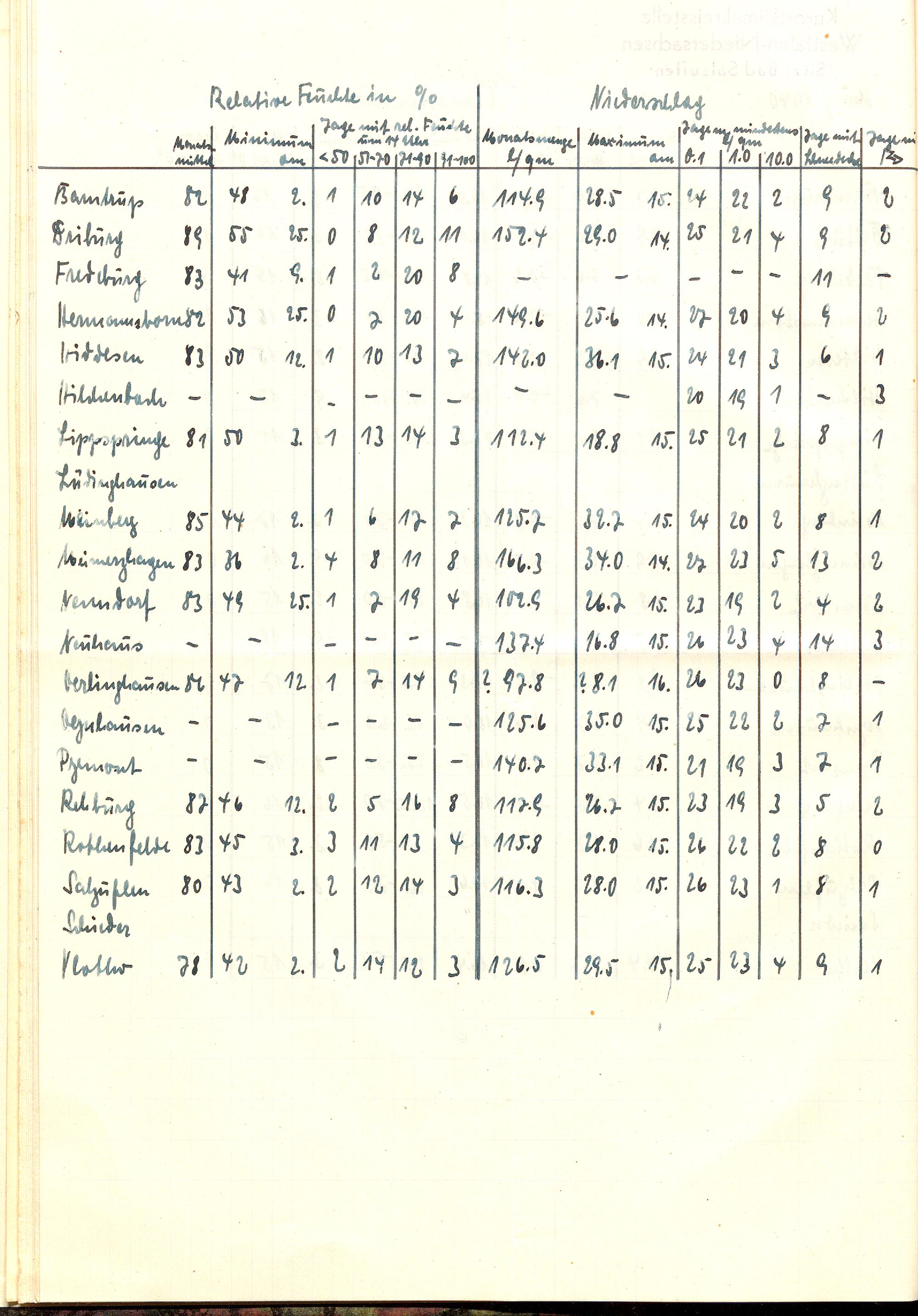 Übersicht über die Witterung im ... im Kurortklimakreis Westfalen-Niedersachsen