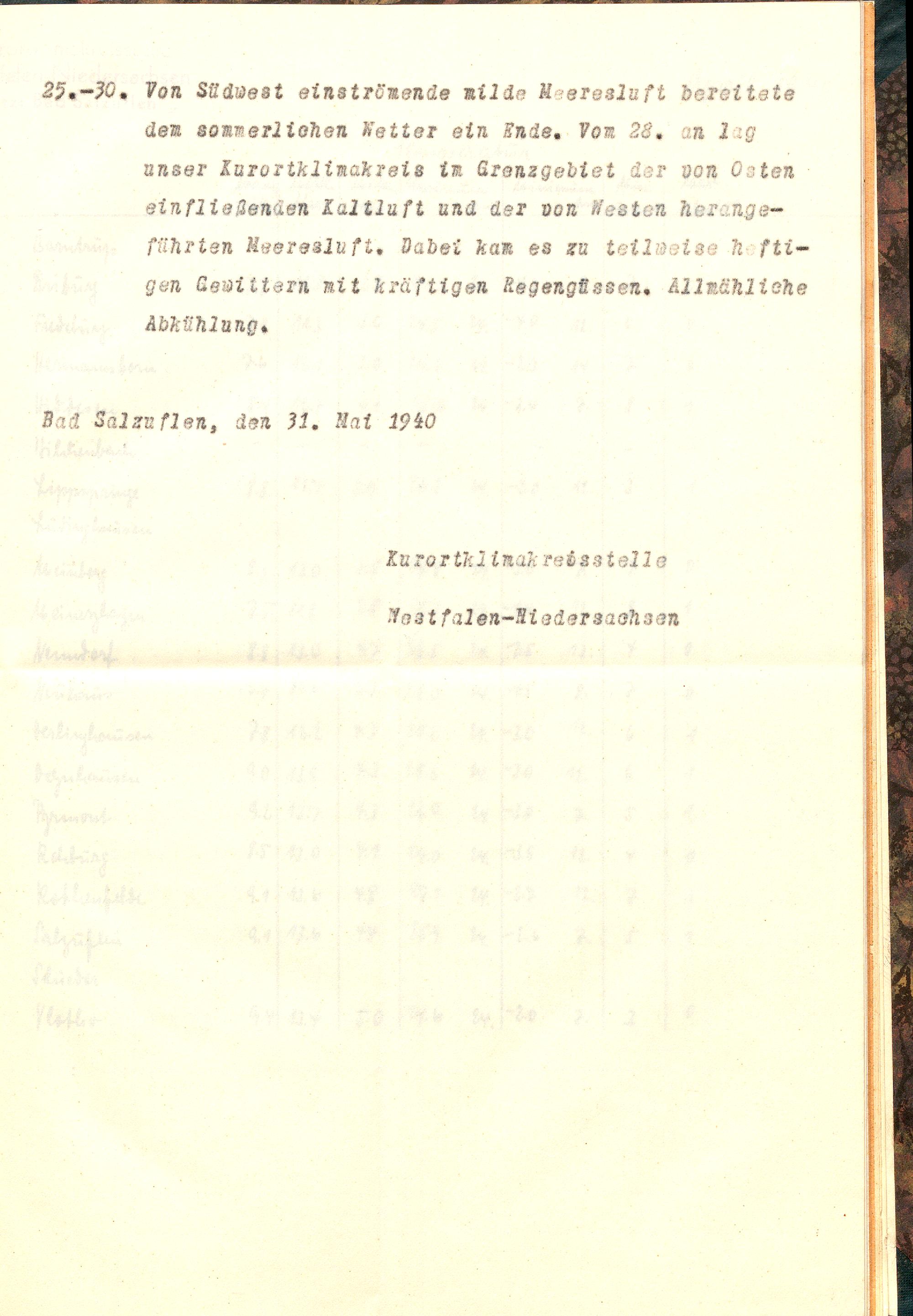 Übersicht über die Witterung im ... im Kurortklimakreis Westfalen-Niedersachsen