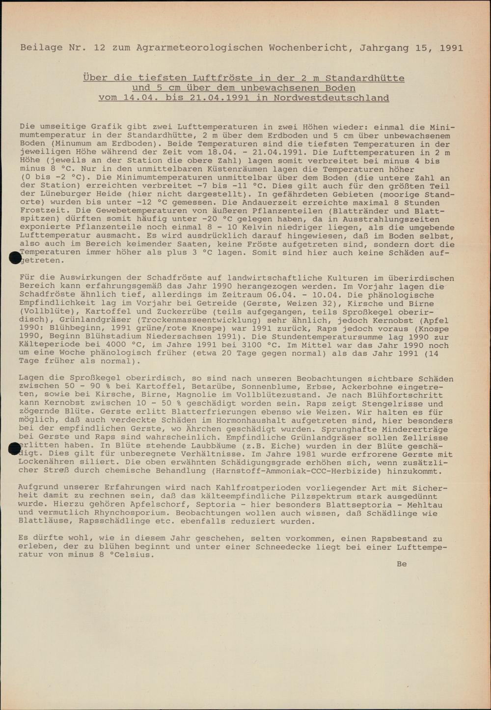 Agrarmeteorologischer Wochenbericht für Norddeutschland