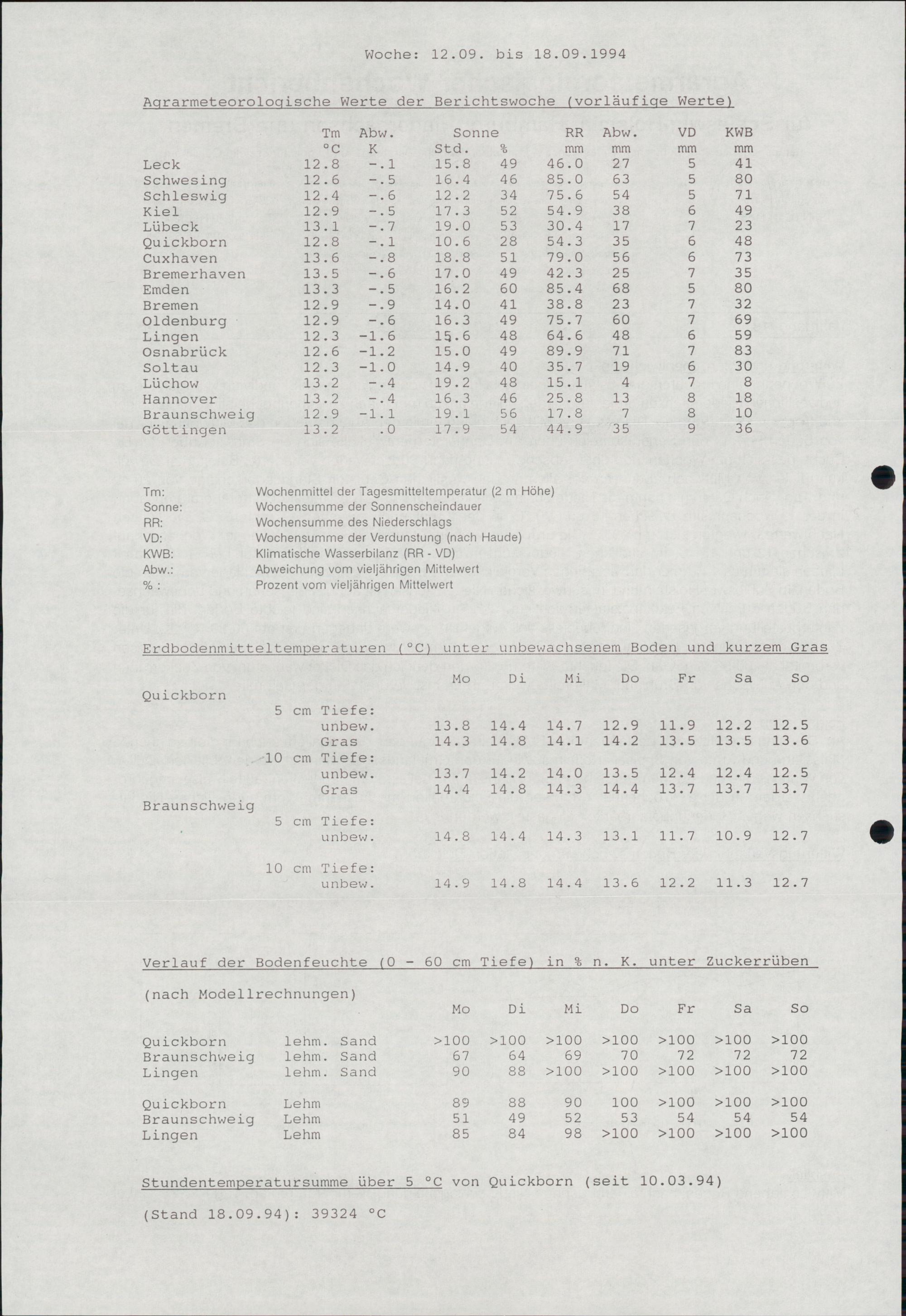 Agrarmeteorologischer Wochenbericht für Schleswig-Holstein, Hamburg, Niedersachsen,...