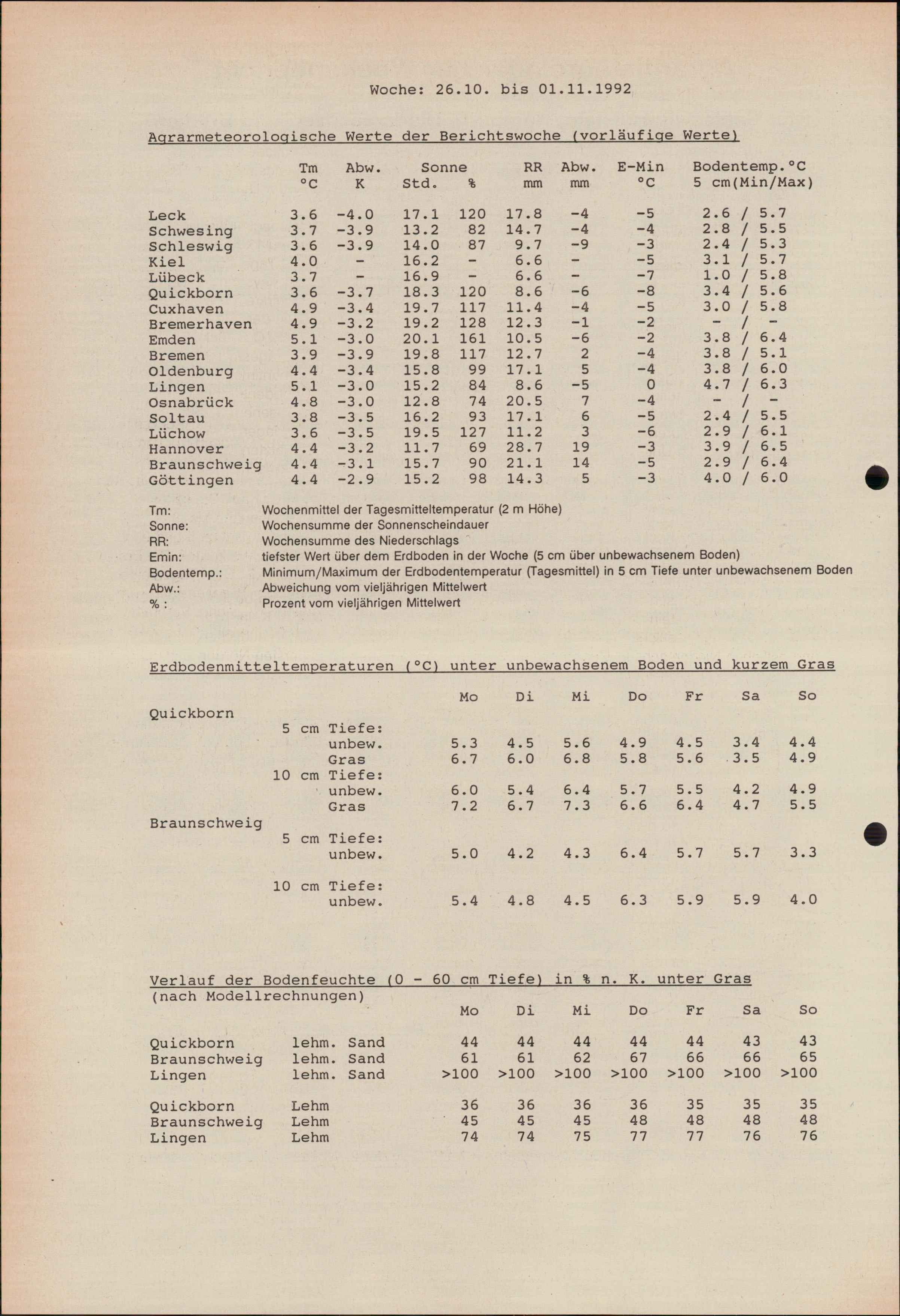 Agrarmeteorologischer Wochenbericht für Schleswig-Holstein, Hamburg, Niedersachsen,...