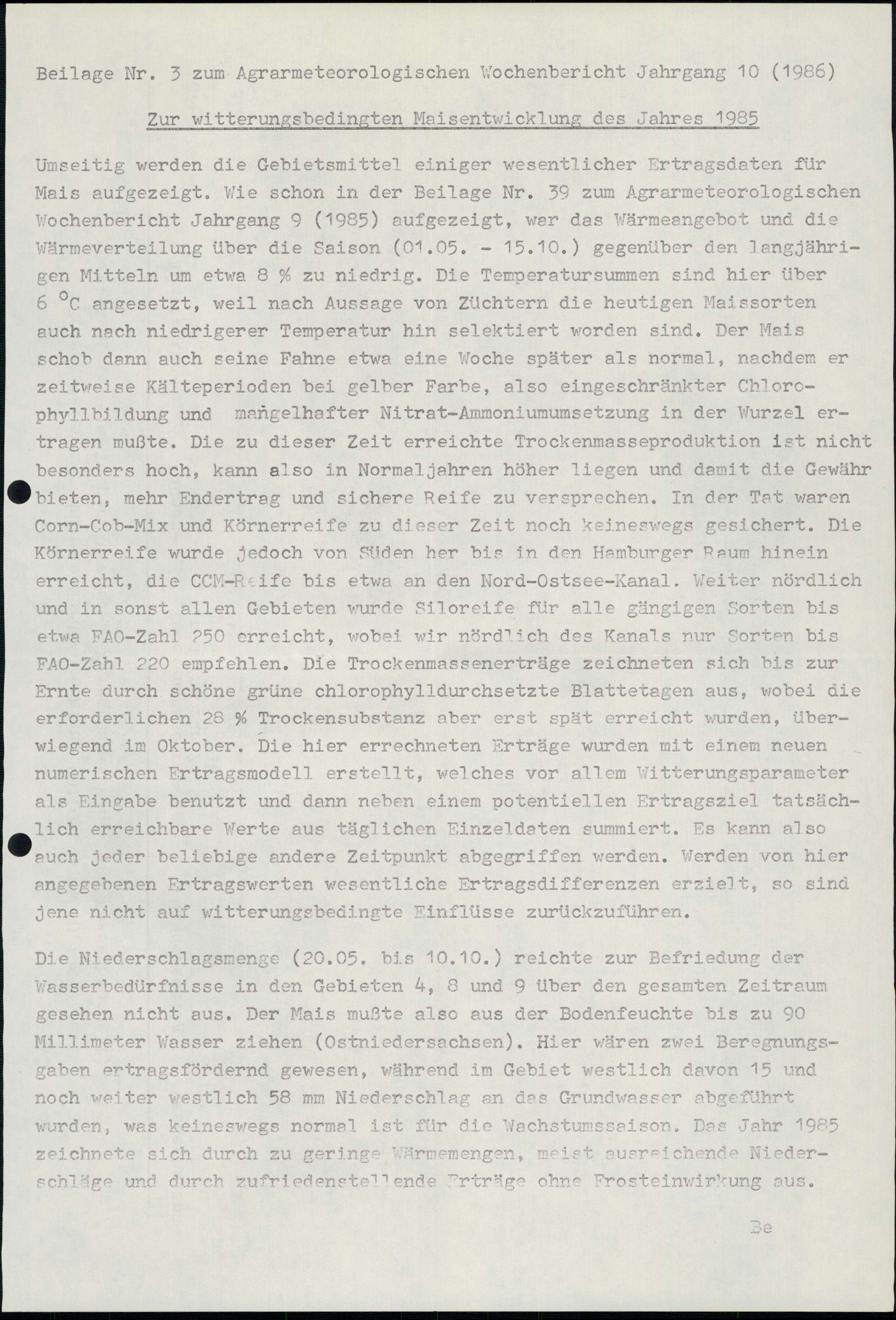 3. Beilage: Zur witterungsbedingten Maisentwicklung des Jahres 1985