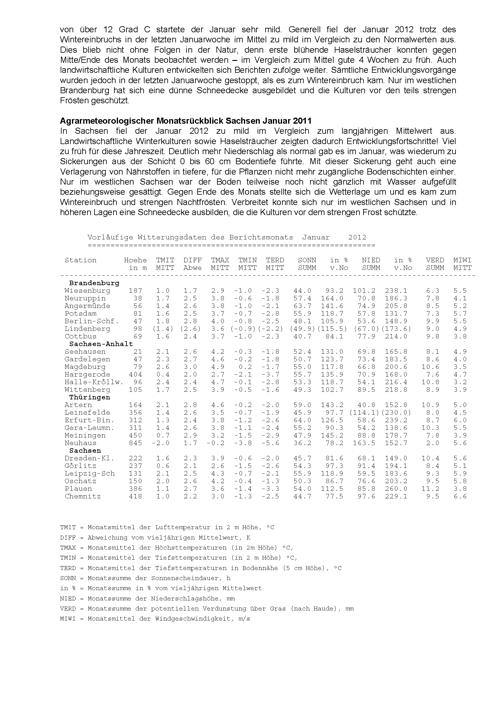 Agrarmeteorologischer Monatsbericht für Brandenburg, Sachsen-Anhalt, Thüringen und...