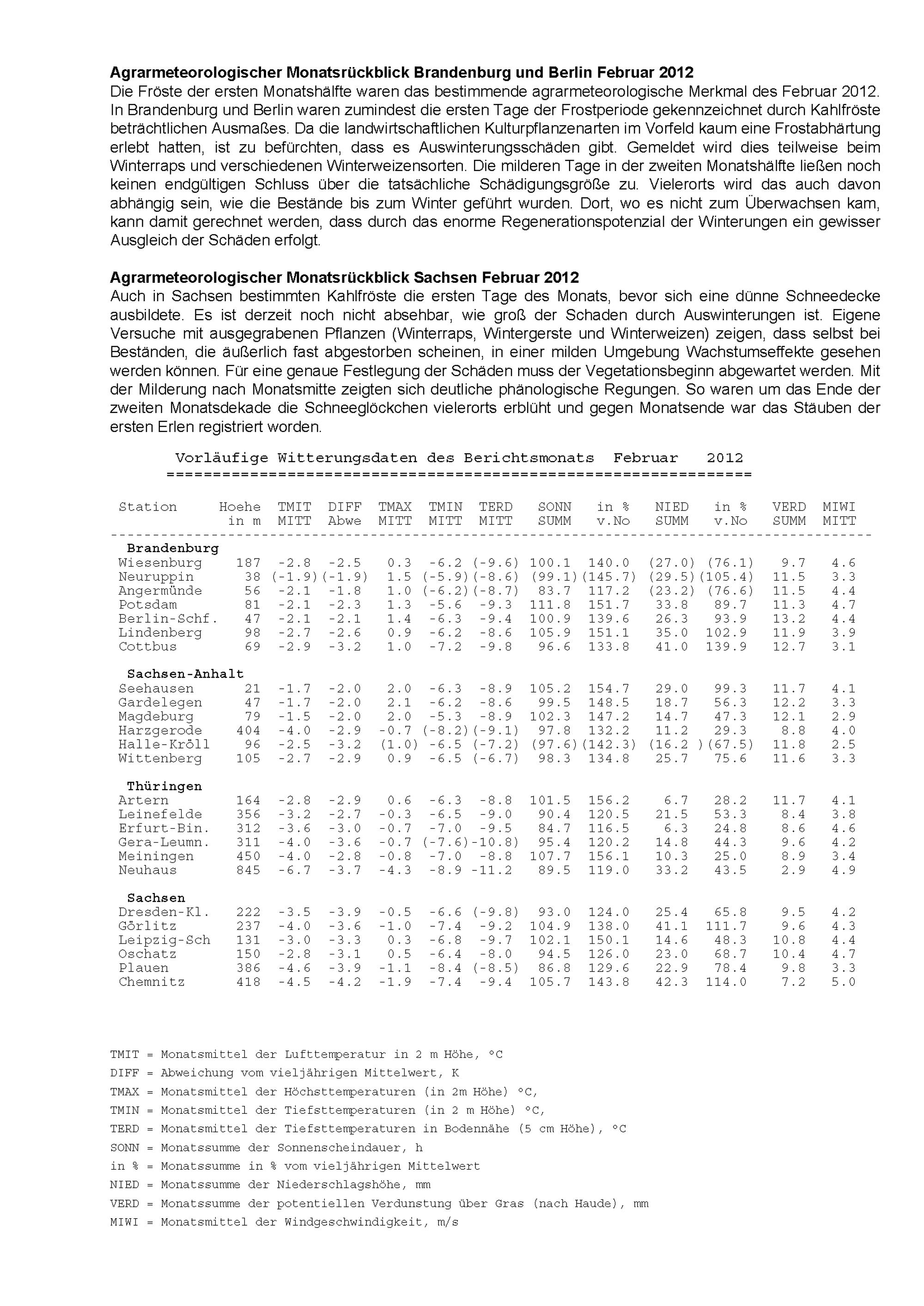 Agrarmeteorologischer Monatsbericht für Brandenburg, Sachsen-Anhalt, Thüringen und...