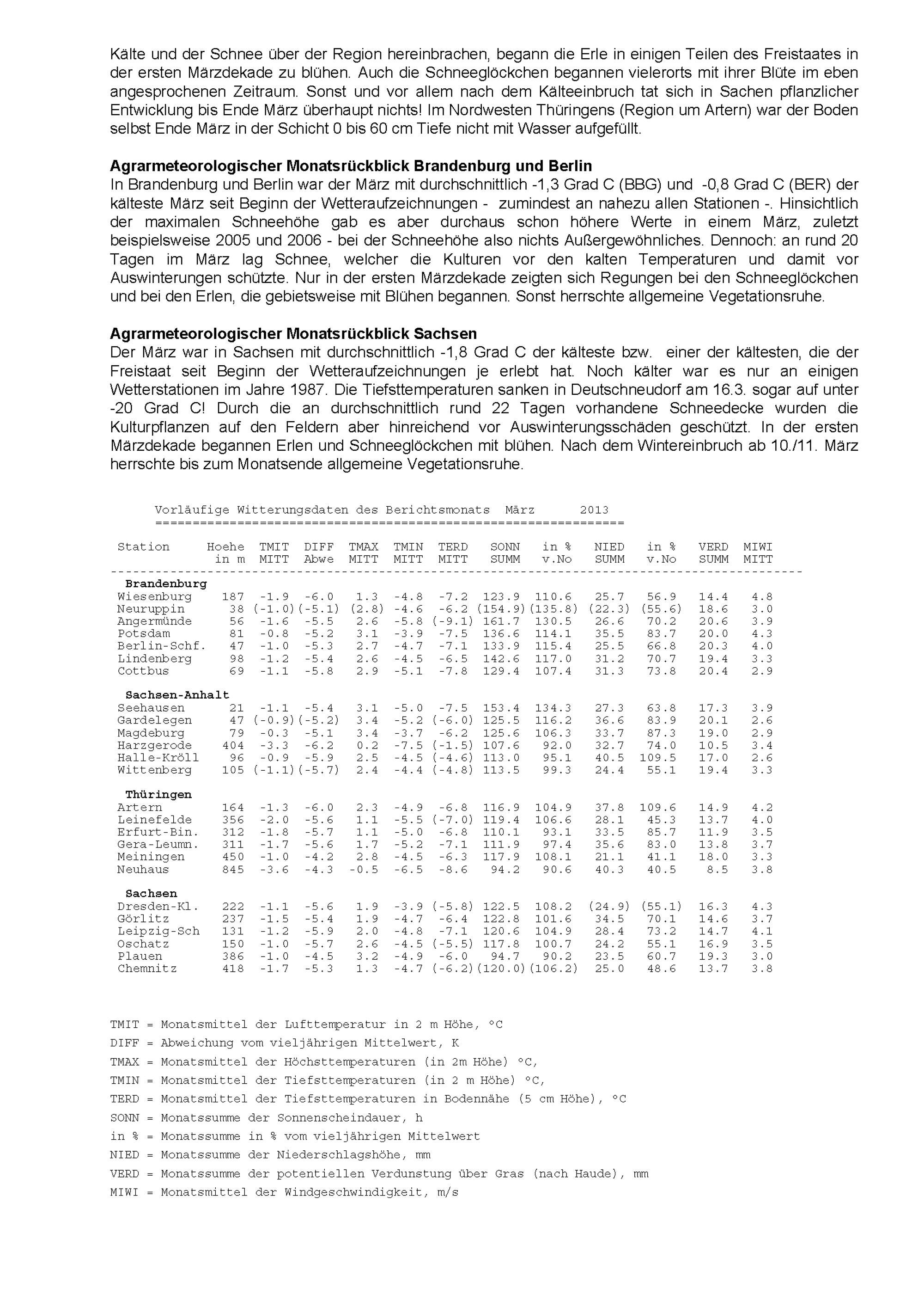 Agrarmeteorologischer Monatsbericht für Brandenburg, Sachsen-Anhalt, Thüringen und...