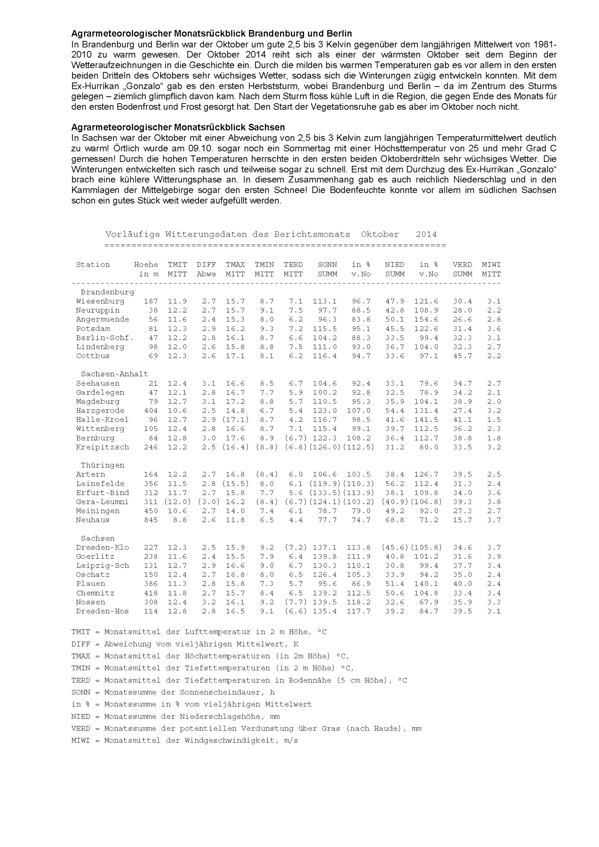 Agrarmeteorologischer Monatsbericht für Brandenburg, Sachsen-Anhalt, Thüringen und...